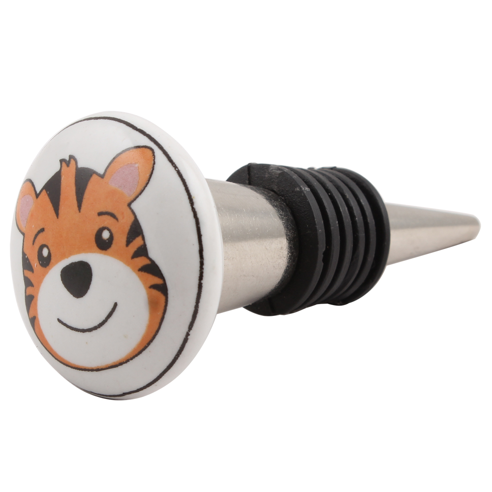 Tiger Flat Ceramic Wine Stopper.zinc alloy wine bottle stopper.