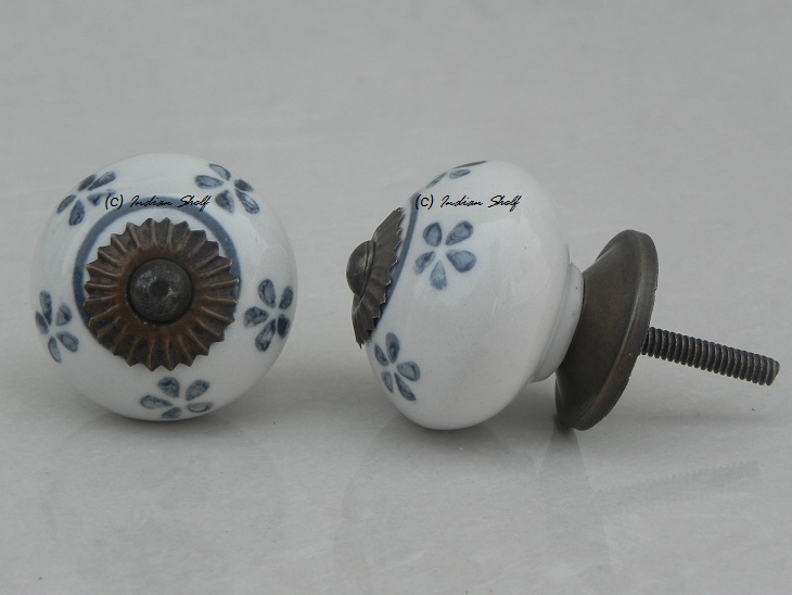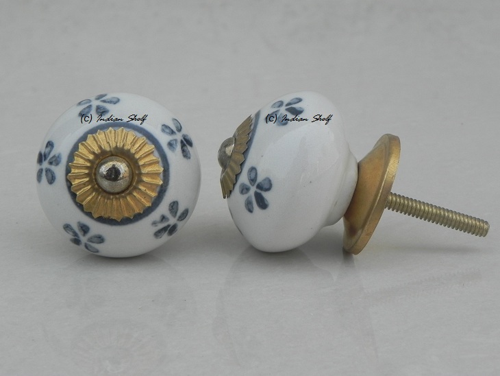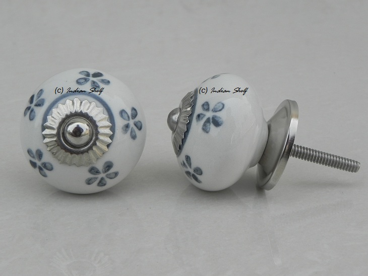 Tiny Floral Grey Ceramic Knob. Ideal for kitchen cabinets, kitchen drawers, dining room, bed room, chest drawers, dressing tables, almirah