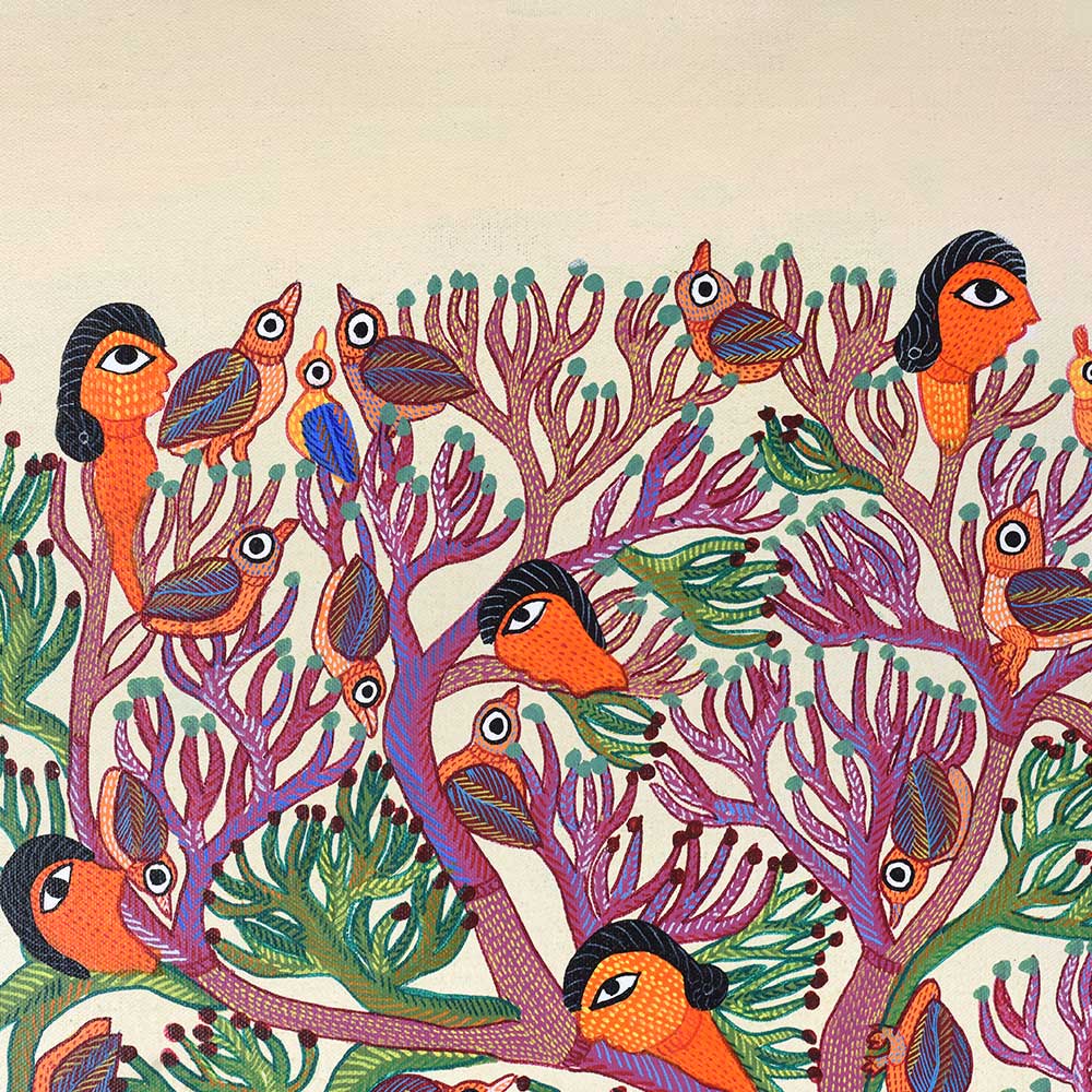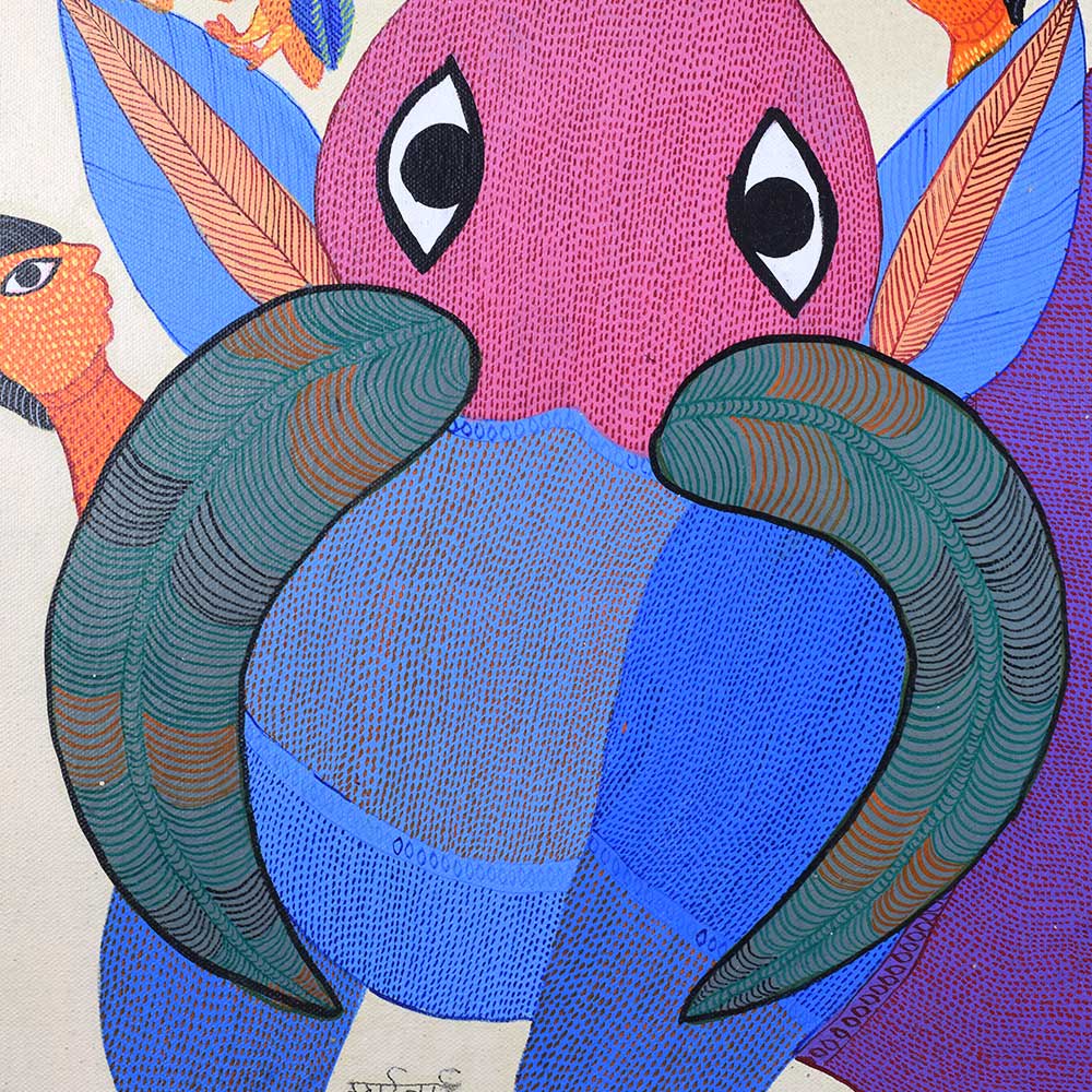 - Acrylic on canvas: Durgabai’s expert use of acrylic paints enhances the vivid colors and texture of the work, bringing the piece to life.