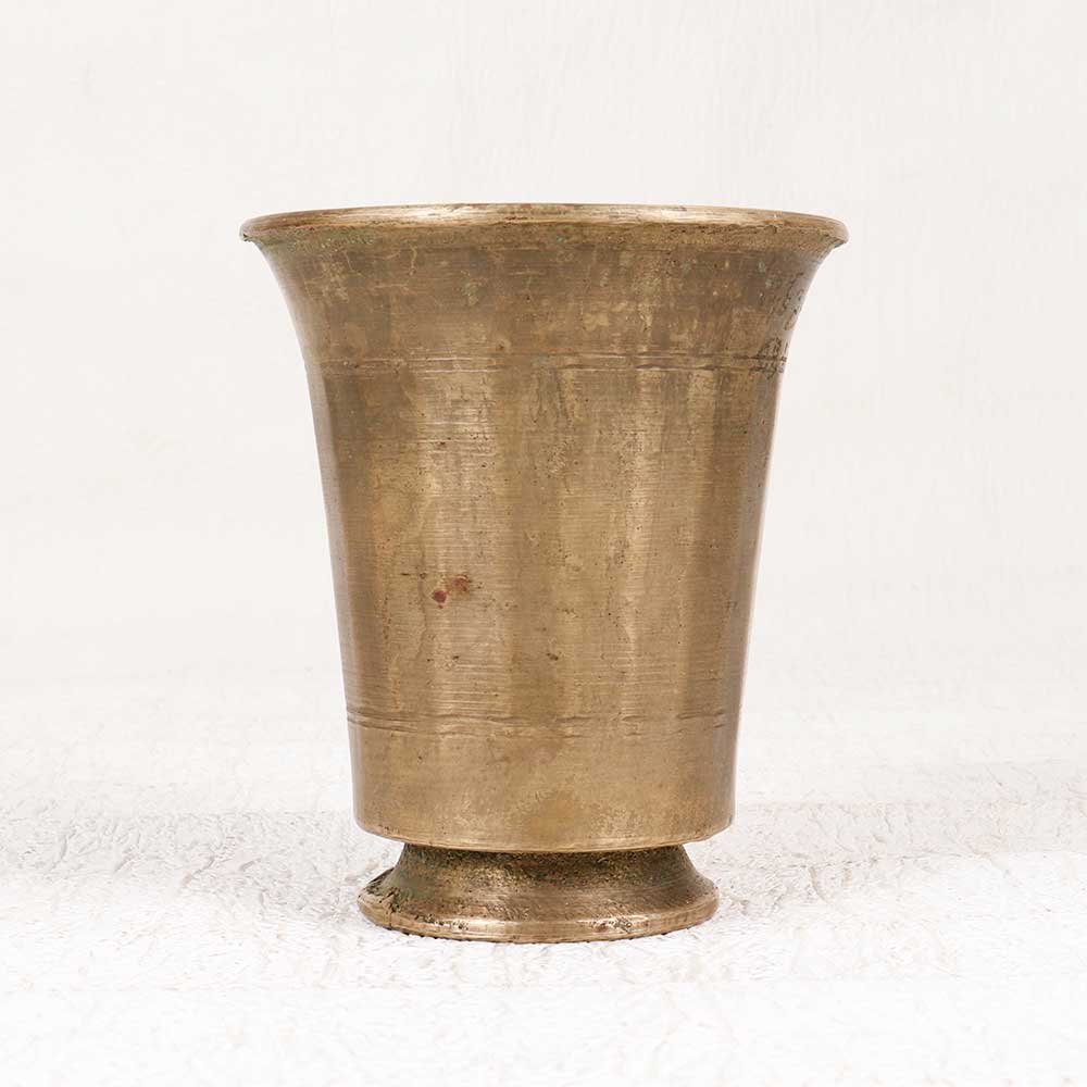 - Handcrafted antique brass cup from South India