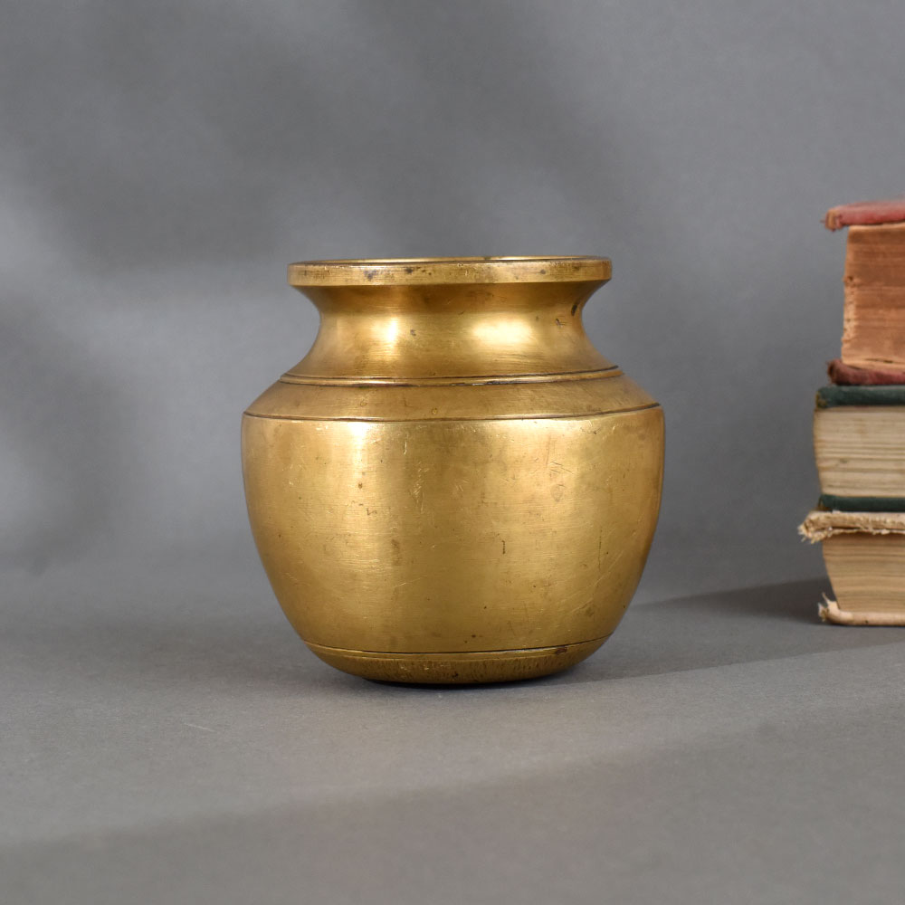 Bring a touch of tradition to your spiritual rituals with this Handcrafted Brass Holy Water Pot. Expertly made from pure brass, this pot is ideal for storing and offering holy water during poojas, havans, and festive ceremonies. Its simple yet elegant rounded design reflects classic Indian craftsmanship, making it a perfect addition to your altar or temple. The smooth golden finish radiates purity and auspiciousness, symbolizing prosperity and spiritual harmony. Durable and easy to maintain, this brass pot is not just a functional pooja item but also a beautiful decor piece. It is an excellent choice for personal use or as a thoughtful gift for weddings, housewarmings, and religious occasions.