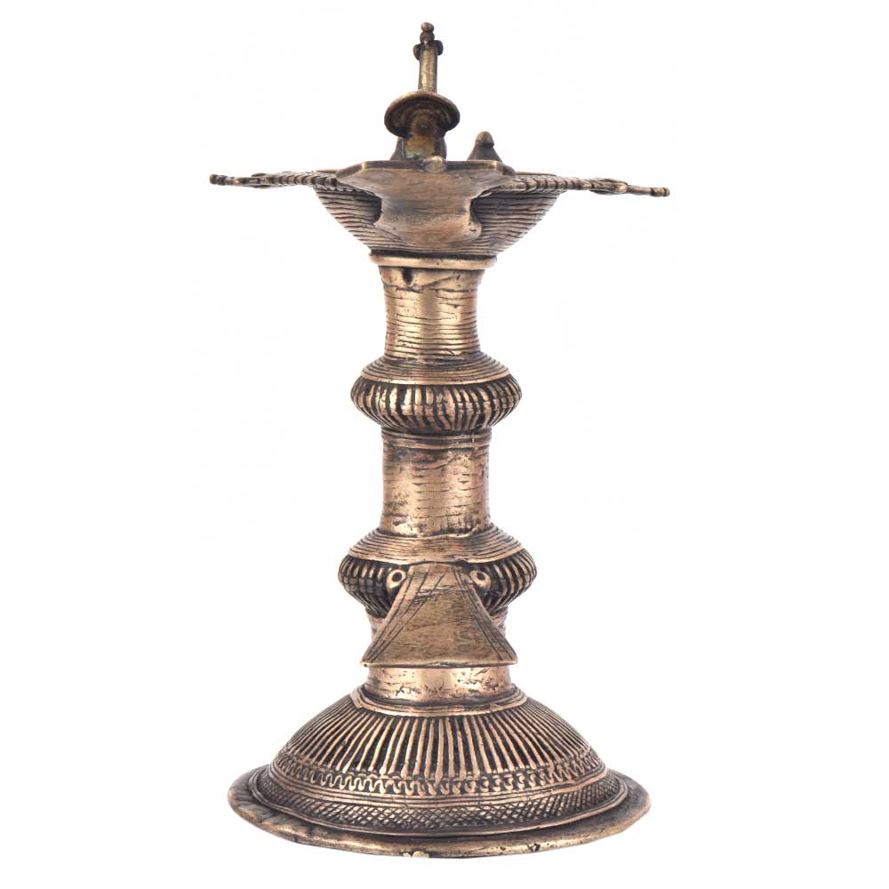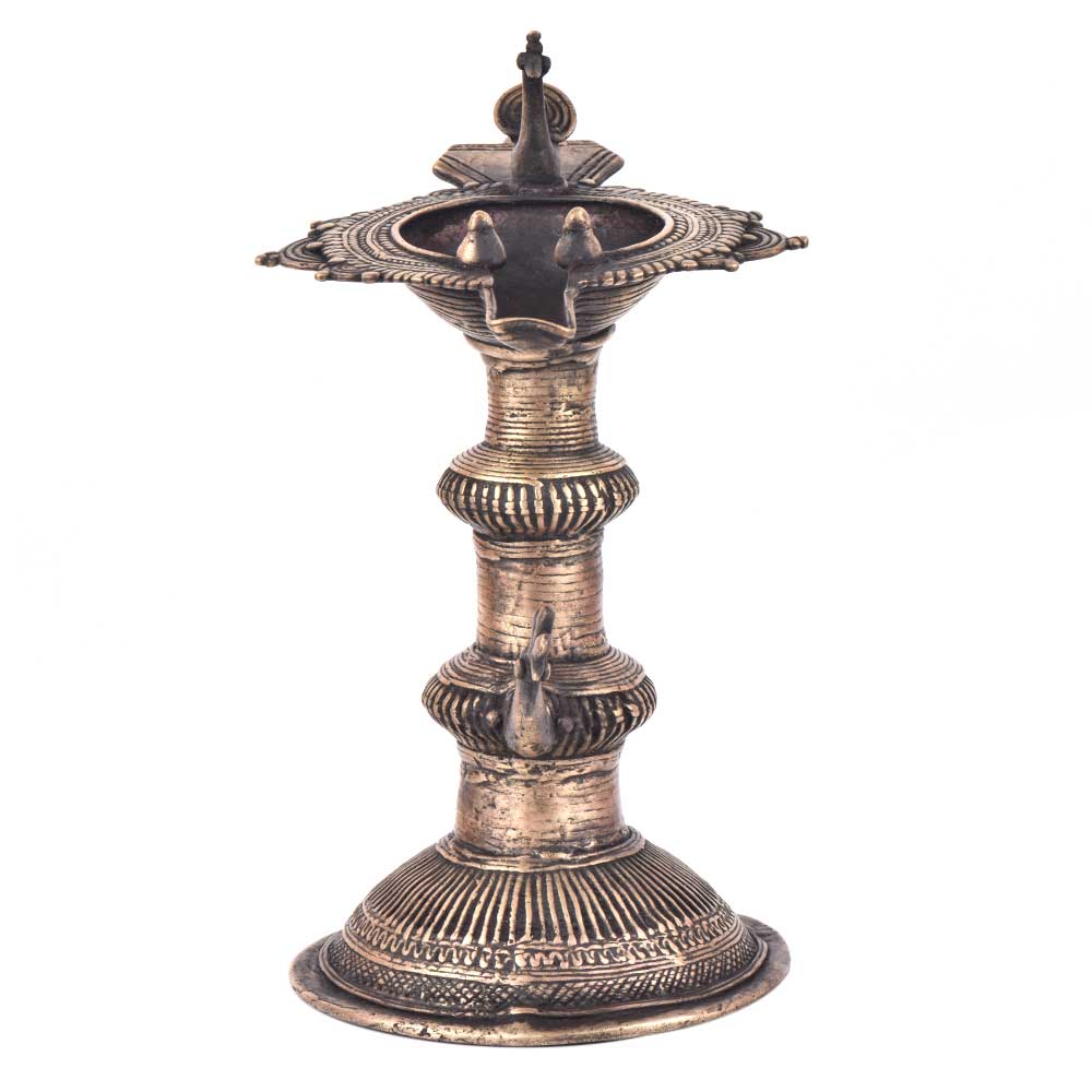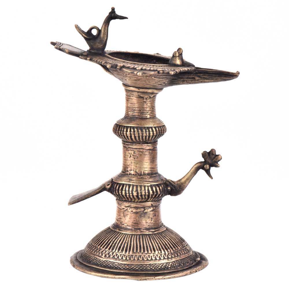 Handcrafted using old lost wax technique primarily practiced in Orrisa and West Bengals by the local or tribal artisans. In this technique the molten wax is poured into desired clay mould and when the wax melts the clay is broken and we get the desired metal object which is further polished to perfection. The Deep Cup Can Be Filled with Oil and Light a Cotton Wick. Diyas/ Oil Lamps are Considered Auspicious as in Hindu Religion. It is detailed with Elephant and Peacock Animals with Beautiful Details.