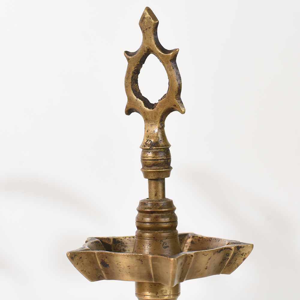 - Handcrafted brass lamp stand inspired by South Indian art