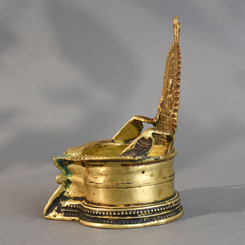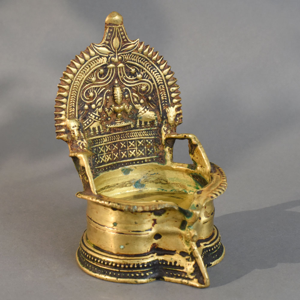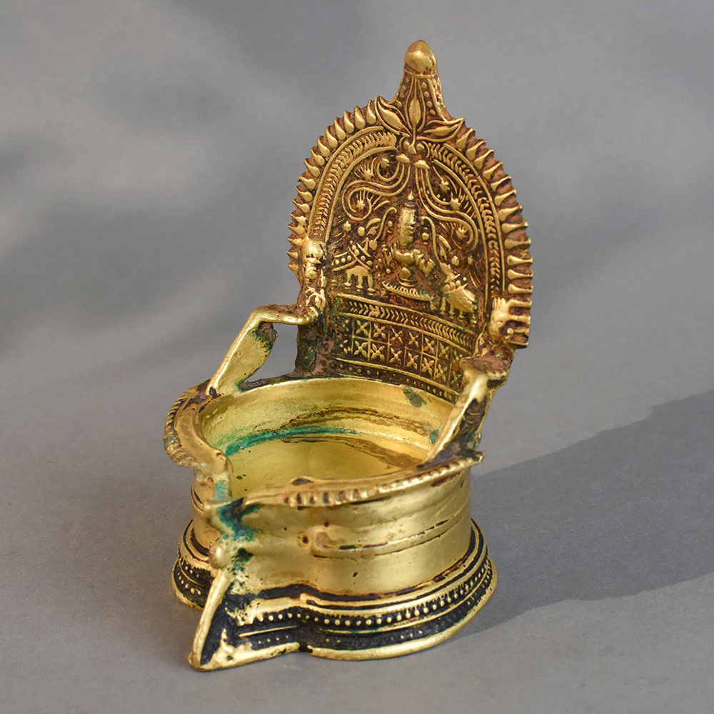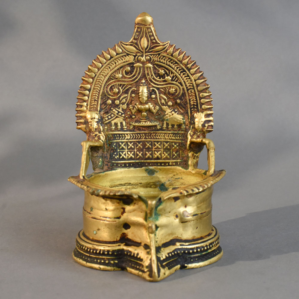 - Traditional South Indian brass diya with deity design