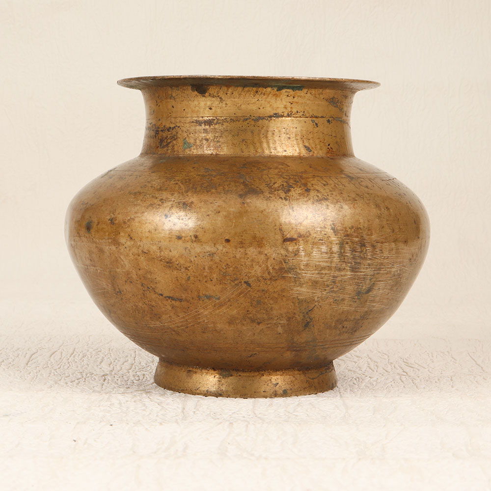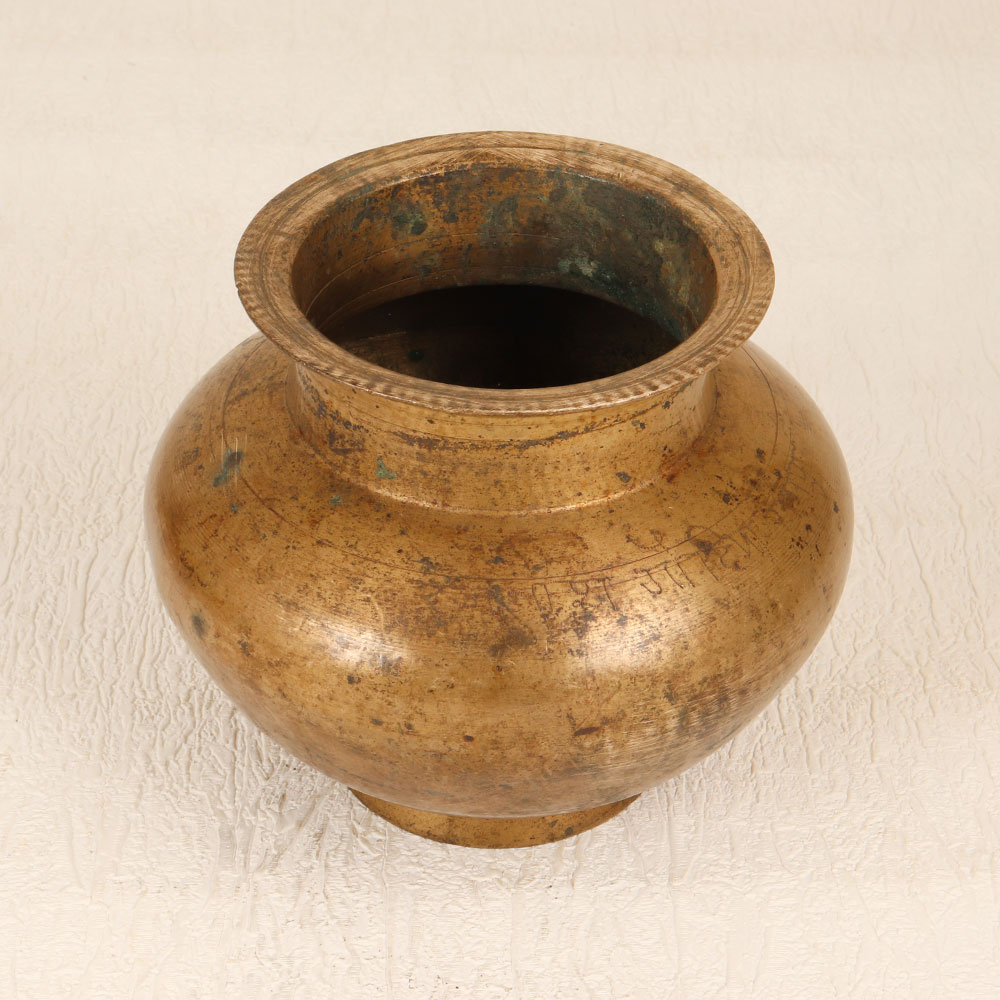 A Vintage Brass Holy Water Pot which is a timeless masterpiece crafted with precision by highly skilled Indian artisans in the revered South Indian Art tradition. This sacred vessel is adorned with an antique brown finish and serves as a symbol of divine purity during prayers, rituals, and havans. Handcrafted from high-quality brass, this holy water pot embodies the rich cultural heritage of India, showcasing intricate detailing and a distinct vintage charm. Its versatile design makes it a perfect addition to prayer rooms in homes, offices, restaurants, hotels, or cafes, creating an ambiance of spirituality and grace. Beyond its spiritual significance, this pot doubles as an elegant indoor flower pot, adding a touch of antiquity to your living space. Its antique brown finish lends it an air of authenticity, making it a striking piece that can be proudly displayed as part of a vintage collection. For those seeking a thoughtful and meaningful gift, this Vintage Brass Holy Water Pot is an ideal choice. Present it to your family, friends or relatives on special, festive, or auspicious occasions, and share the blessings of tradition and artistry in a single, cherished artefact.