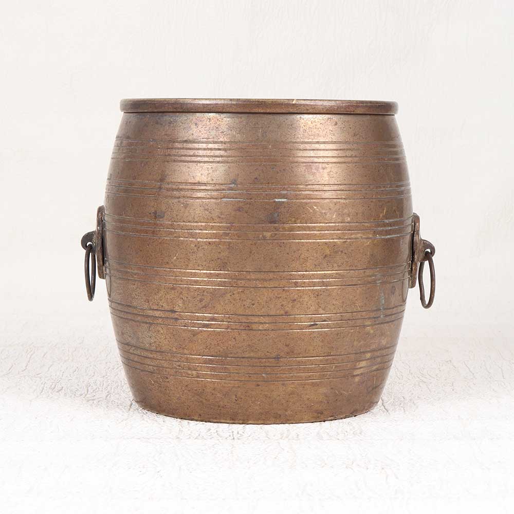 Travel back in time with this vintage brass planter exuding old-world charm and South Indian elegance. Handcrafted from solid brass, this striking planter features a weathered plain brown finish reminiscent of treasured antiques. This planter brings earthy, bohemian style to any space. Its dark brown finish evokes a timeworn, rustic look that feels straight out of the past. Display it in your living room, kitchen, or bedroom as an elegant accent piece to liven up your decor. Plant enthusiasts will love the artisanal appeal of this brass planter. With its versatile design, it provides the perfect home for your indoor garden while adding antique beauty to your space. Bring a touch of South Indian elegance into your home with this handcrafted vintage planter built to become a treasured decoration that endures for generations.