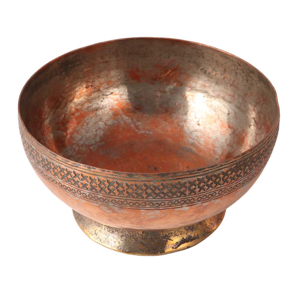A traditional bowl made of high quality copper brings a seductive flair to interiors. This decorative bowl is used for decoration, collecting and display. A handmade copper bowl by highly skilled and experienced artisans in Islamic art. This exquisite piece of art is now in high demand to decorate homes, restaurants, hotels, cafes and stores. A must have for your collection of vintage art. For centuries, these bowls have been the first choice for decorating experts to add a charming flair to interiors. Copper bowls are more reliable and durable than plastic bowls. Use them as a fruit bowl for your dining table or a flower pot for your hallway. An incredible gift for any special, festive and auspicious occasion for your loved ones.
