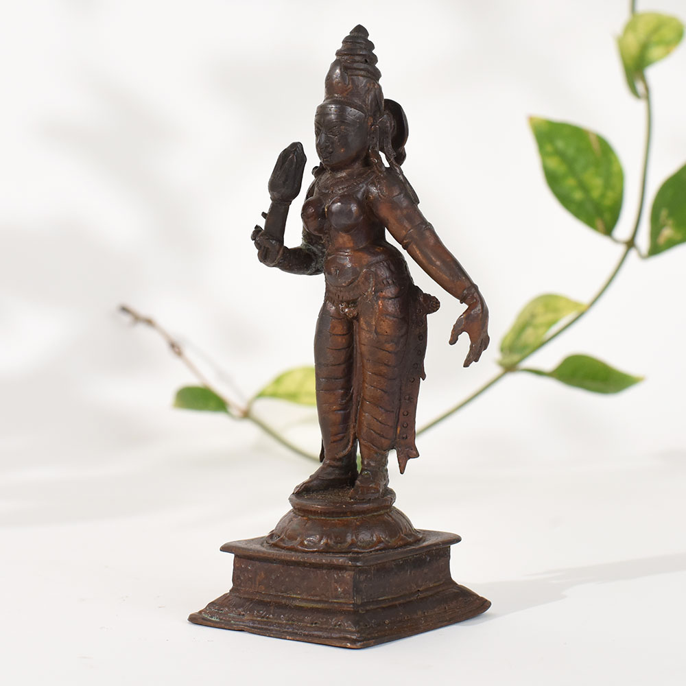 - Handcrafted vintage-style copper goddess Uma (Goddess Parvati) idol