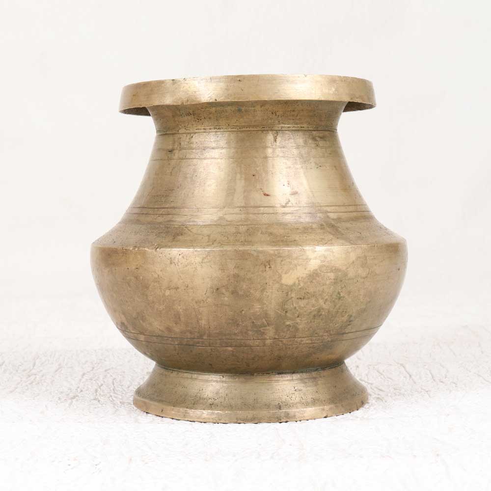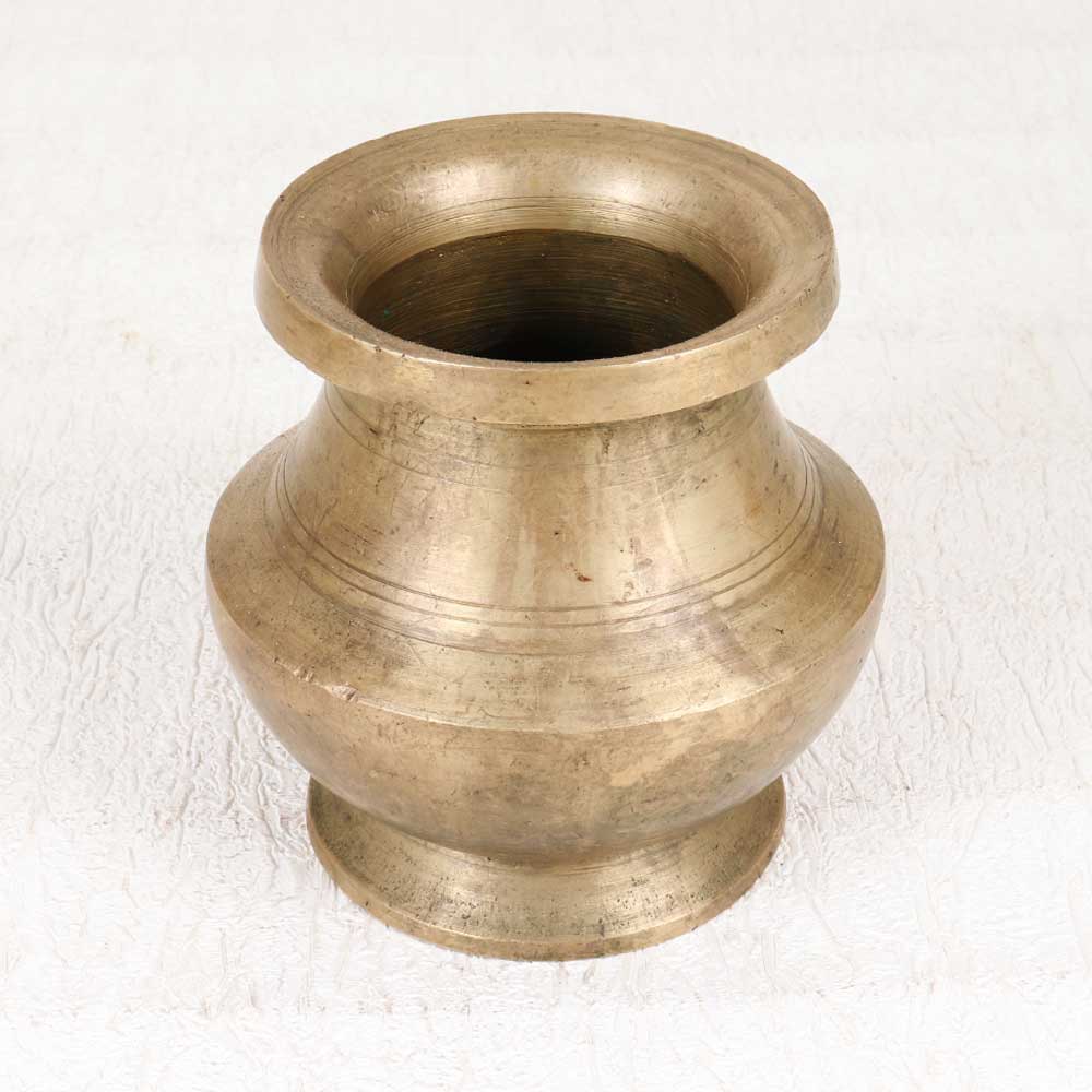 Allow this vintage brass holy water pot to infuse your daily rituals with spiritual tradition. Beautifully handcrafted in South Indian style, its simplicity brings an air of divinity. Designed to hold holy water, this pot transforms mundane moments into sacred ritual. Place it prominently to bless your home. Use it to begin and end each day with purpose and divine connection. Let its presence remind you to sanctify every ordinary moment. Ideal for spiritually-minded spaces, this vintage vessel elevates the everyday. Its simplicity blends into any decor while bringing heritage and meaning to your home. Honor tradition and invite in the eternal with this special piece.
