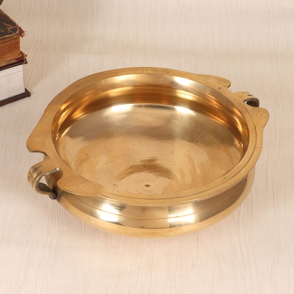 Unlock the captivating charm of the past with our stunning vintage brass Urli. Crafted with meticulous attention to detail, this shimmering golden masterpiece seamlessly blends traditional Indian craftsmanship with modern sophistication, elevating any space it graces. Infuse your home with the timeless elegance of this Urli. Its striking presence instantly commands attention, transforming any room into a refined, sophisticated oasis. Whether displayed on an end table, mantel, or shelf, this captivating piece will leave a lasting impression on all who experience it. Embrace the beauty of the past and let this stunning Urli inspire you to explore the rich cultural heritage of India. The Urli, a traditional vessel used for various ceremonial and decorative purposes, now graces your contemporary living space with its captivating allure. Elevate your decor and indulge in the enchanting essence of ancient artistry, seamlessly blending with your modern lifestyle.