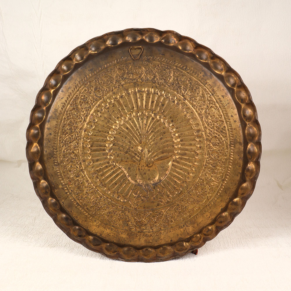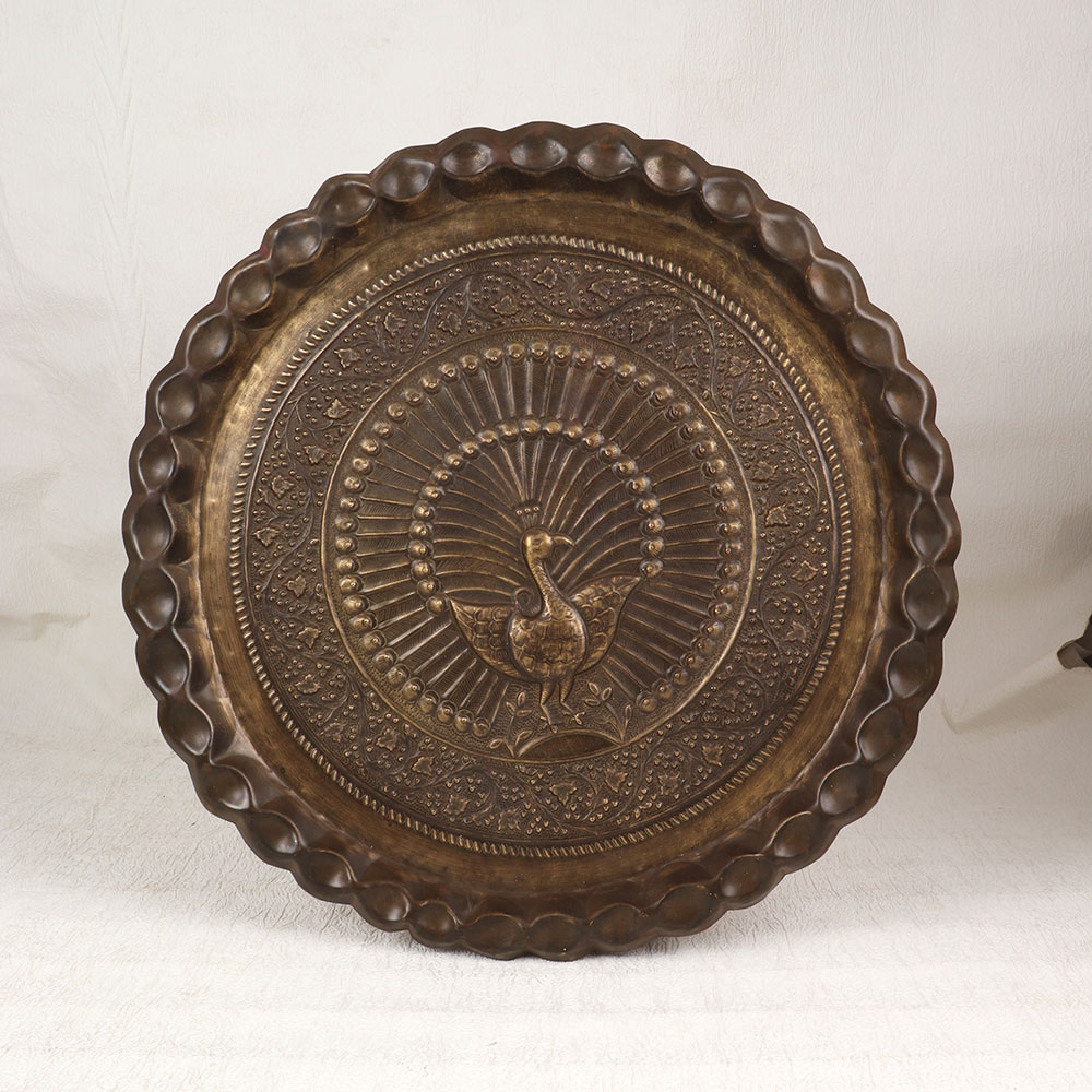 Display your passion for peacocks with this enchanting vintage brass wall plate featuring a regal engraved peacock design. This chic wall decor will add an exotic, artistic touch to your home. This peacock wall hanging practically shimmers with artistry and vintage style. The peacock engraving has a textured look and feel, with the intricate details of the feathers visible to the eye and touch. Surrounding the peacock, ornate scrollwork and patterns complete the vintage aesthetic. The antique brass finish gives this wall decor depth and character. Whether you hang it in your living room, bedroom, entryway or office, this brass peacock wall plate is guaranteed to become a striking focal point. Peacock decor is on-trend right now, making this engraved brass plate an eye-catching and fashionable choice. For the peacock lover who wants a touch of exotic, vintage glam in their home, this wall hanging is the perfect find!