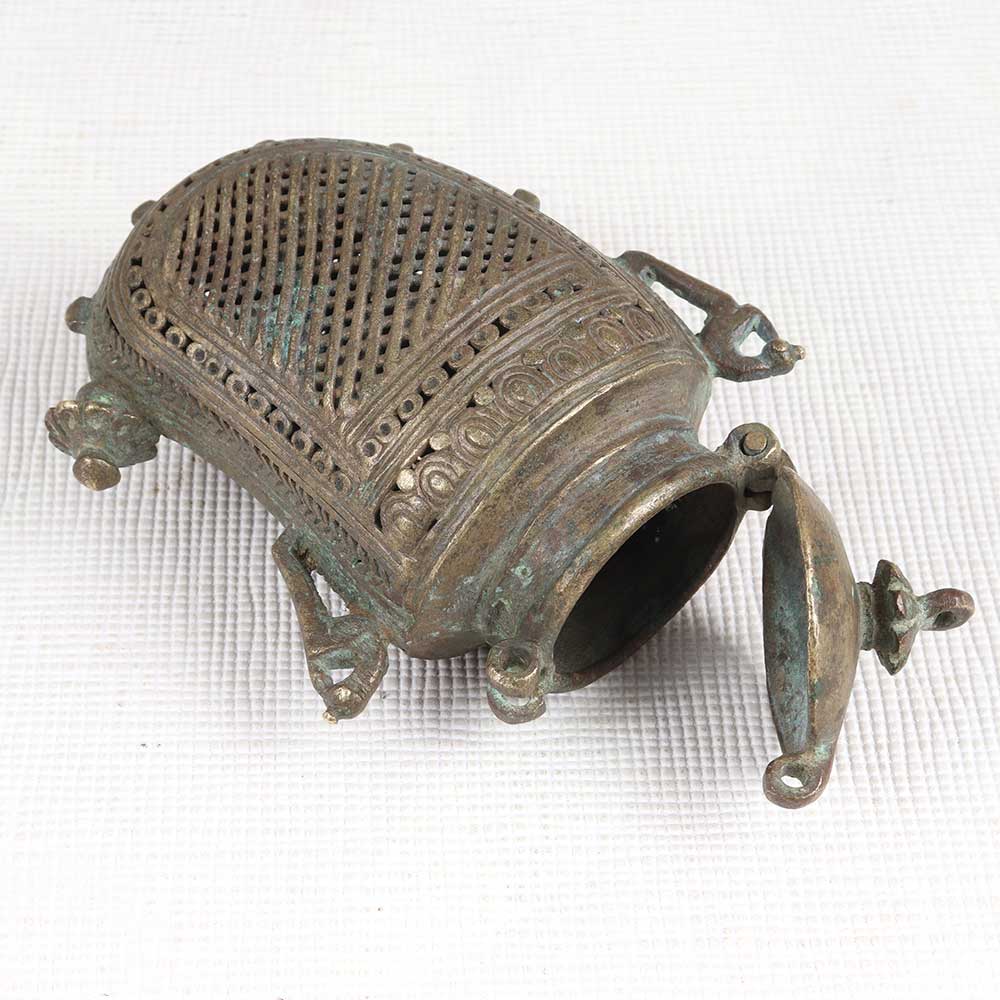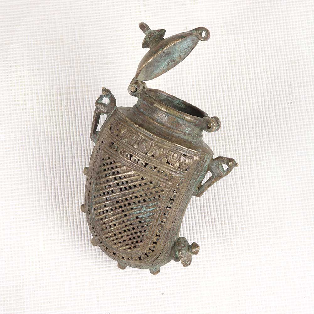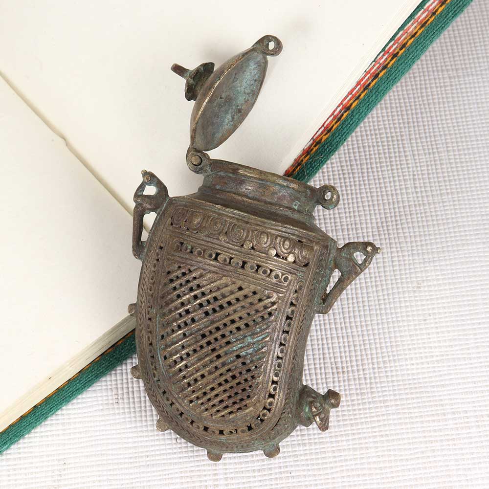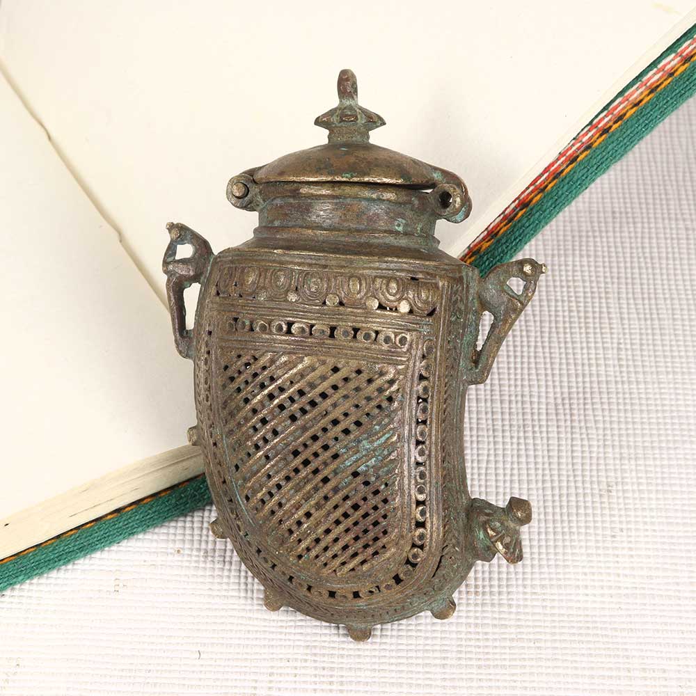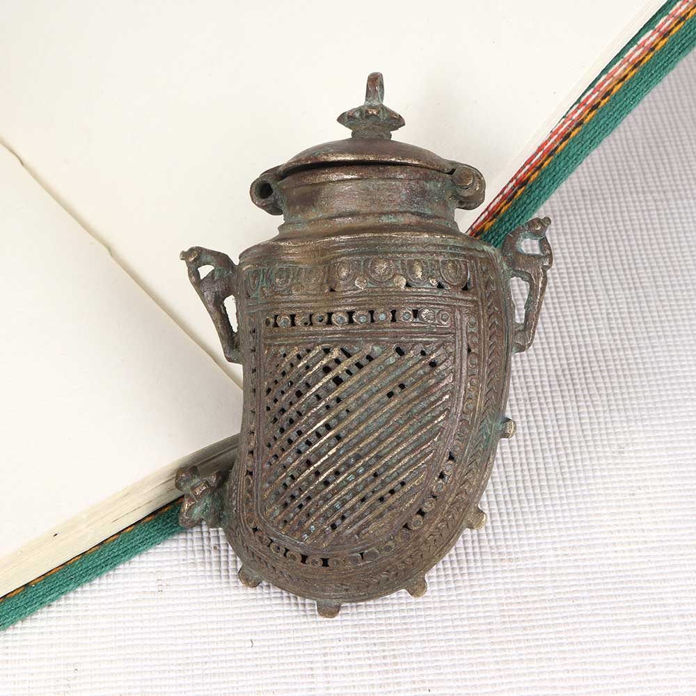 Channel vintage tribal vibes with the brass mango-shaped box. This artisanal box features exquisite jali cutwork in a mango motif, bringing the rustic artistry of rural Indian handicrafts into your home. This tribal-inspired box merges decorative artistry with functional storage. The delicate jali metalwork creates an intricate mango pattern, while the sturdy brass construction forms a useful container for jewelry, curios and decor items. Display in a prominent shelf or table spot to infuse exotic rustic flair. For the bohemian collector or world traveler, this tribal mango box makes a special gift. The vintage look and intricate craftsmanship reflect an appreciation for indigenous creativity and artisanal techniques from around the globe.