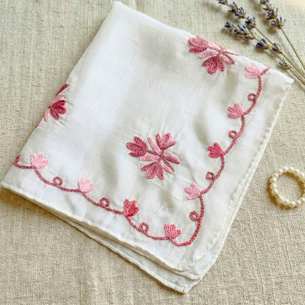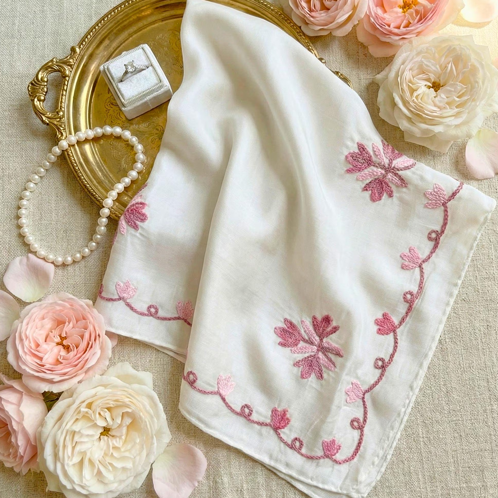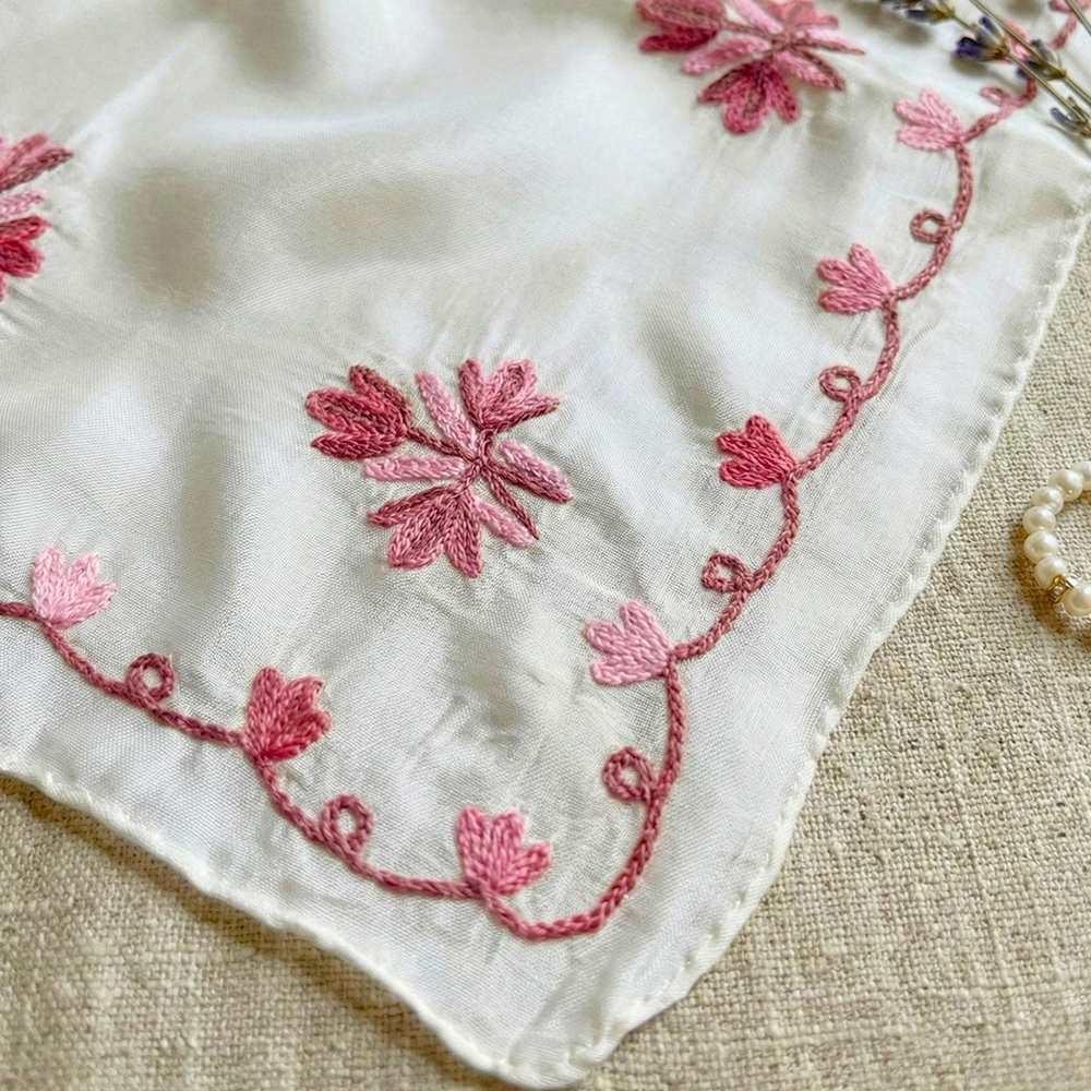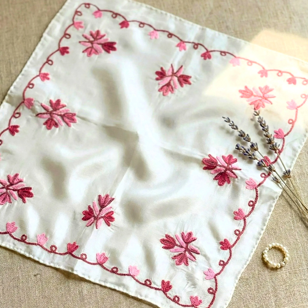 Elevate everyday elegance with our Kashmiri hand-embroidered silk handkerchief, crafted to reflect timeless refinement and artisanal heritage. Made from smooth, lightweight silk, this piece features a soft natural sheen that feels luxurious to the touch while remaining effortlessly understated.