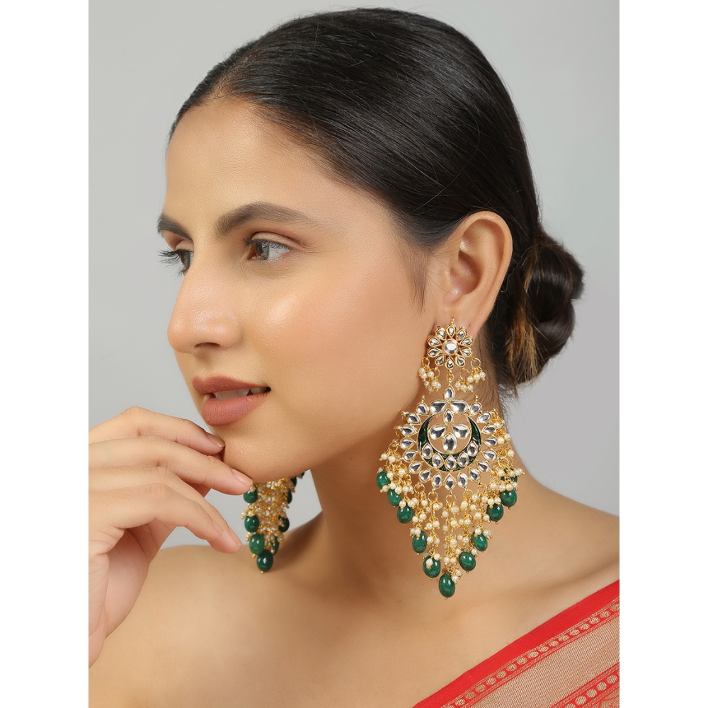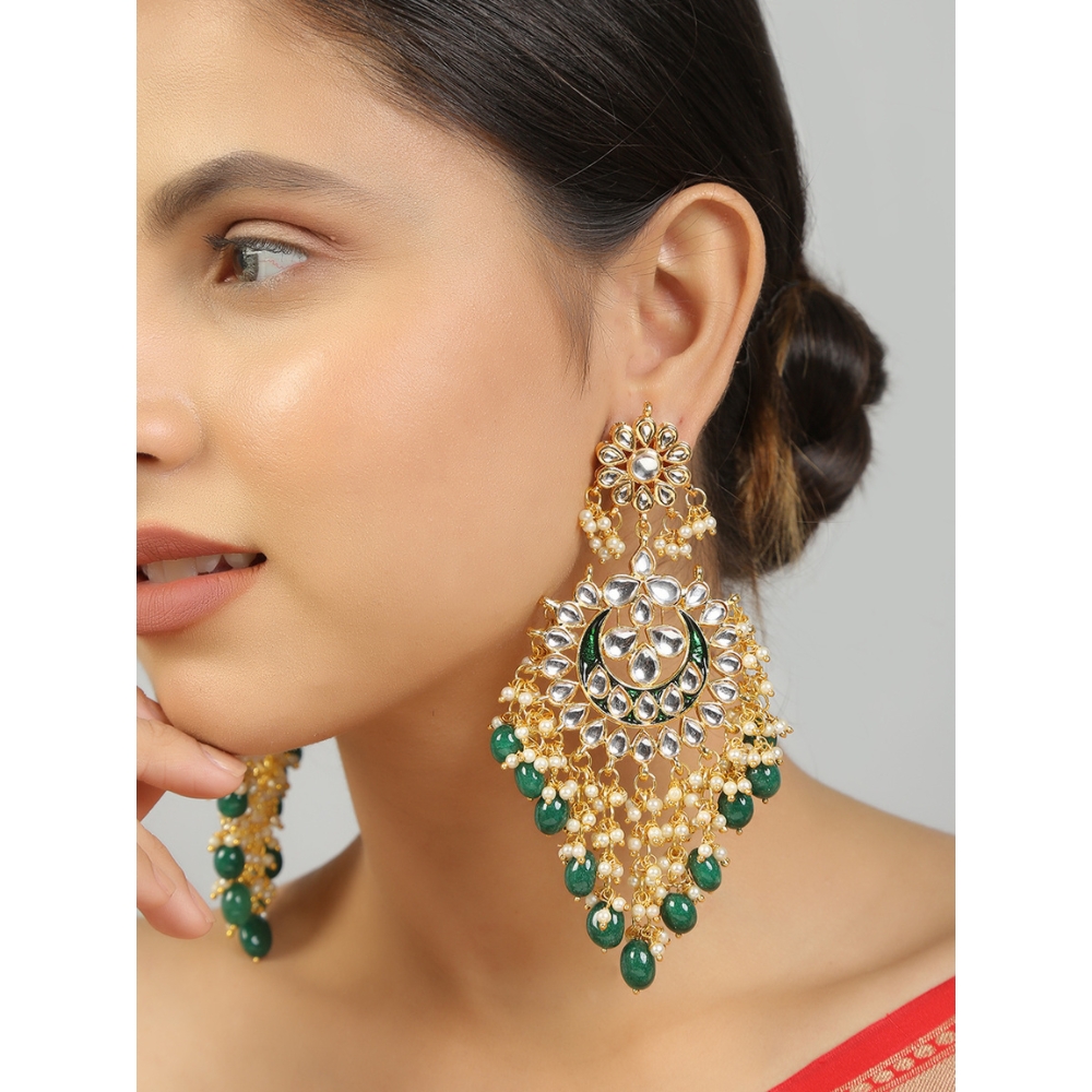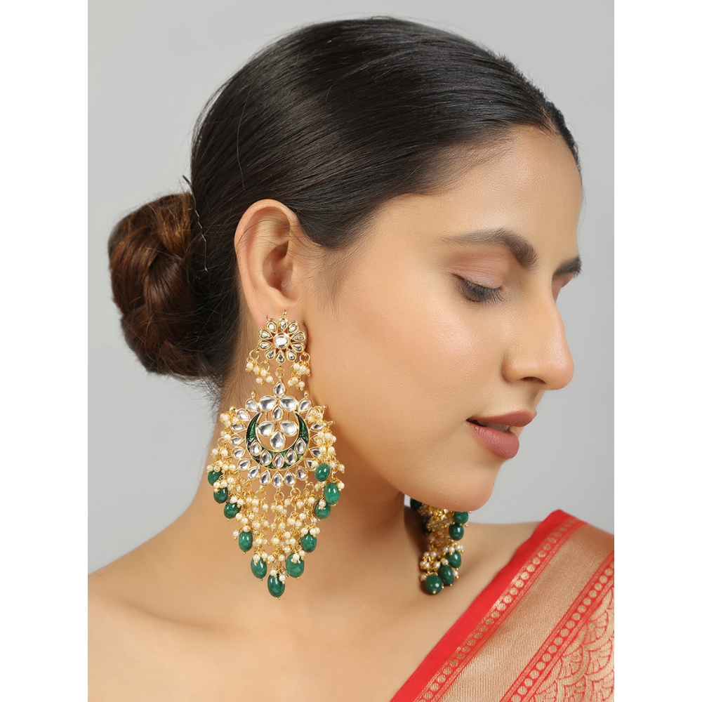 Traditional Kundan Chandbali Earrings With Pearl Drops