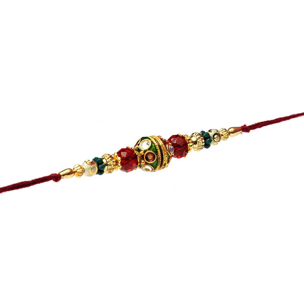 Traditional Meenakari Rakhi with Red-Green Beads Rakhi
