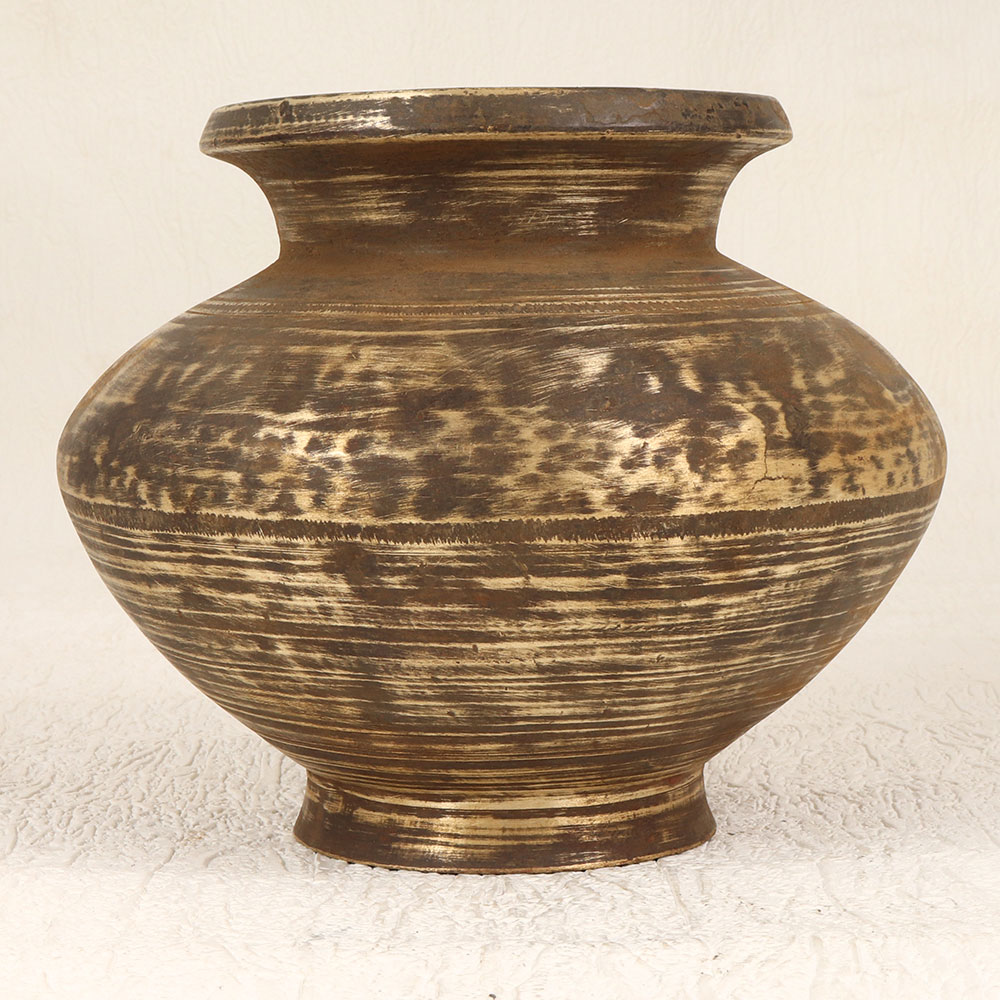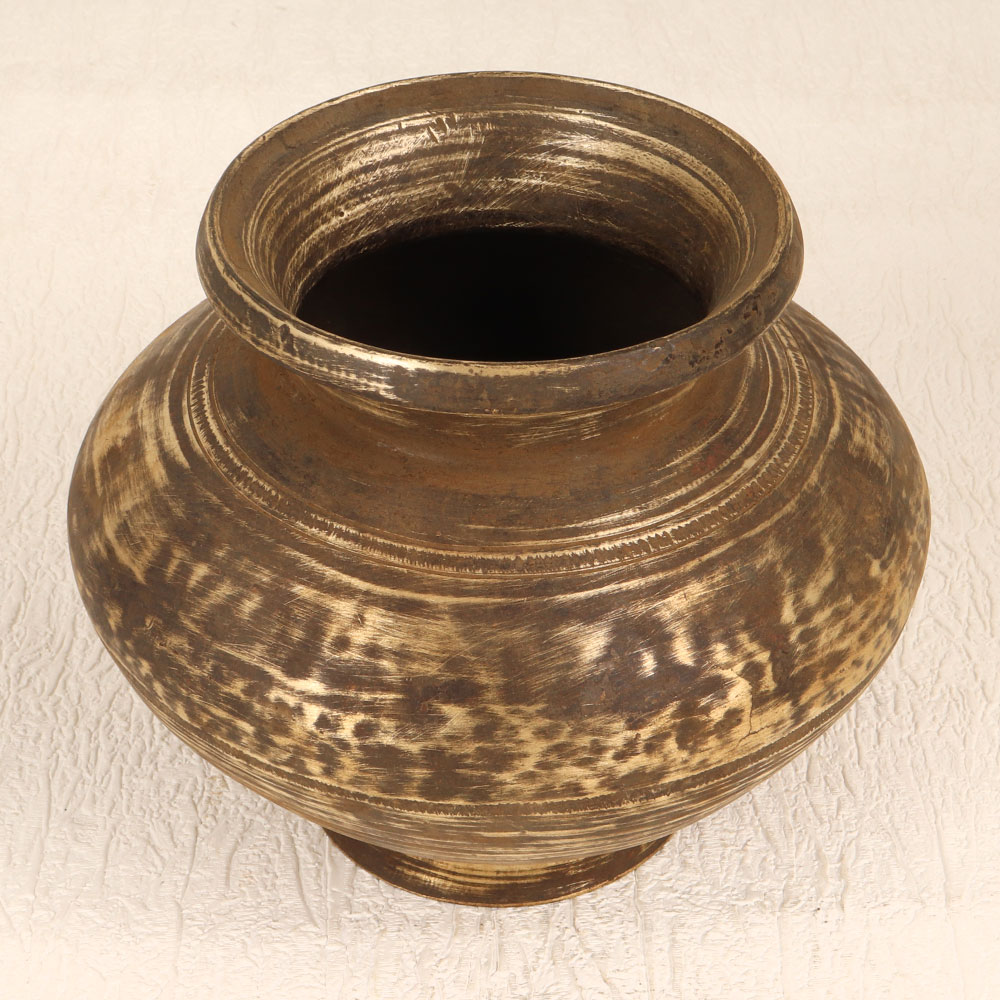 This Vintage Brass Holy Water Pot is a testament to the rich cultural heritage of South Indian Art. Handmade with precision by highly talented Indian artisans, this pot seamlessly combines functionality with aesthetic appeal. The antique brown finish adds a timeless charm, making it a perfect addition to prayer rooms in homes, offices, restaurants, hotels, or cafes. Crafted from high-quality brass, the pot serves as a sacred vessel during prayers, rituals, and havans, holding the purity of holy water. Its versatile design allows it to double as an indoor flower pot, bringing a touch of elegance to any space. Embrace tradition and elegance by incorporating this piece into your vintage collection. Moreover, it makes for an ideal gift for your family, friends or relatives on special, festive, or auspicious occasions, symbolizing blessings, tradition, and the artistry of Indian craftsmanship.