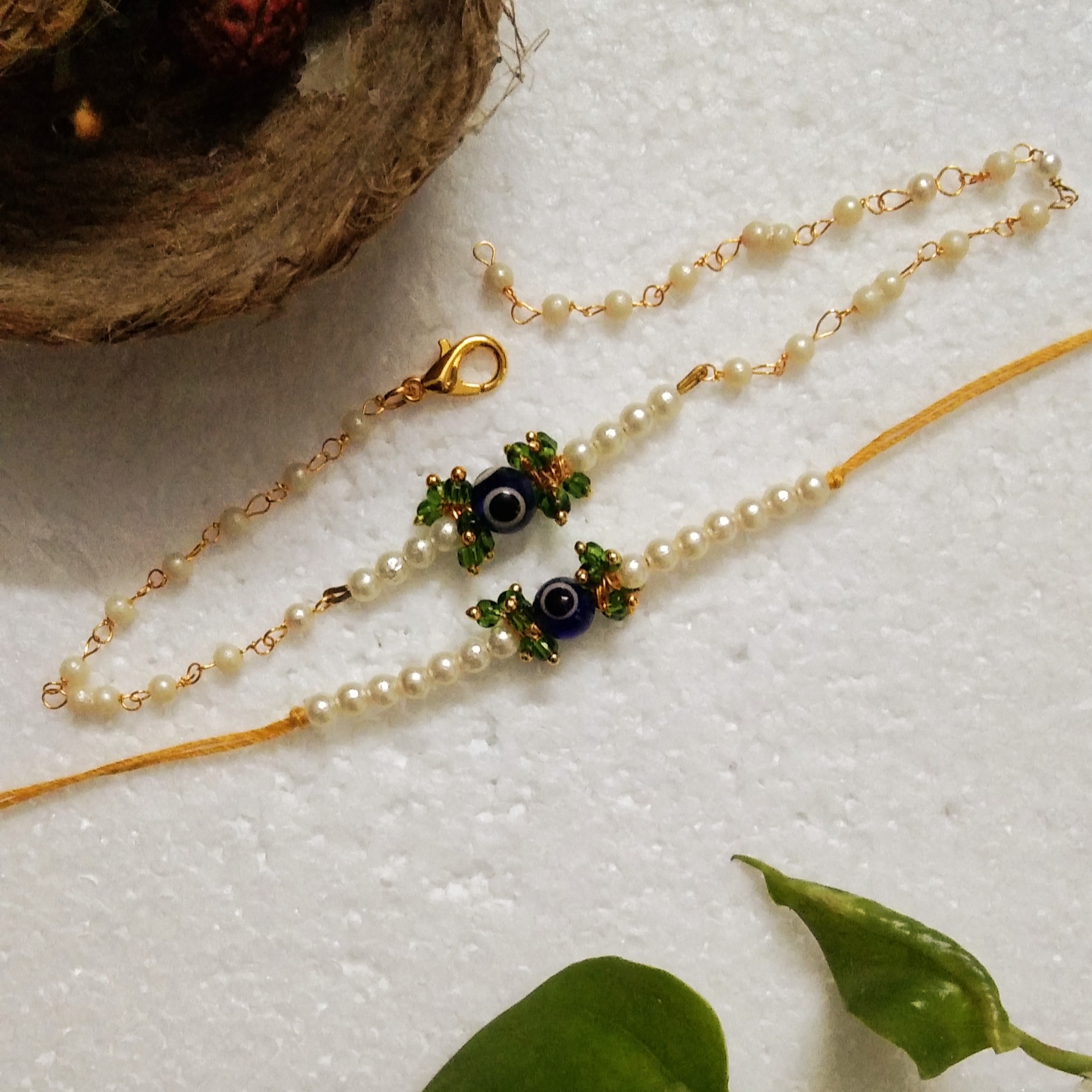 Adorn your brother's wrist with a rakhi crafted from premium glass/metal/acrylic beads, offering both style and a heartfelt touch to your family celebration.