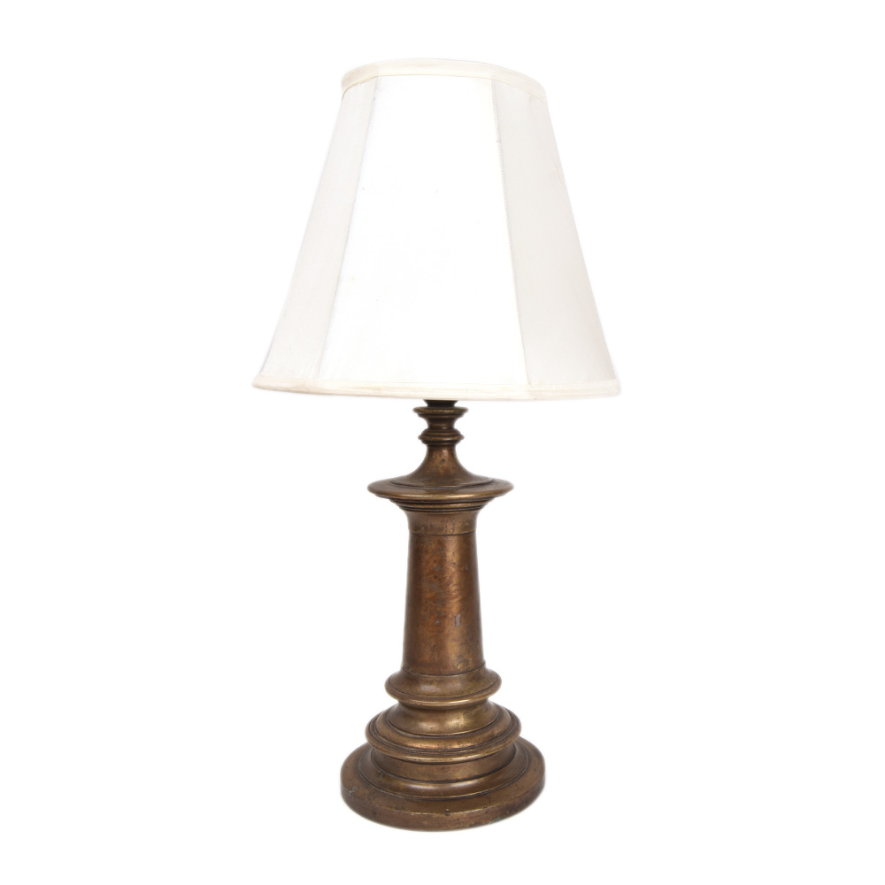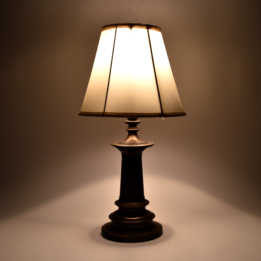 Traditional Table Lamp With Off White Raw Silk Shade.