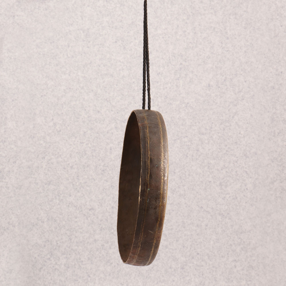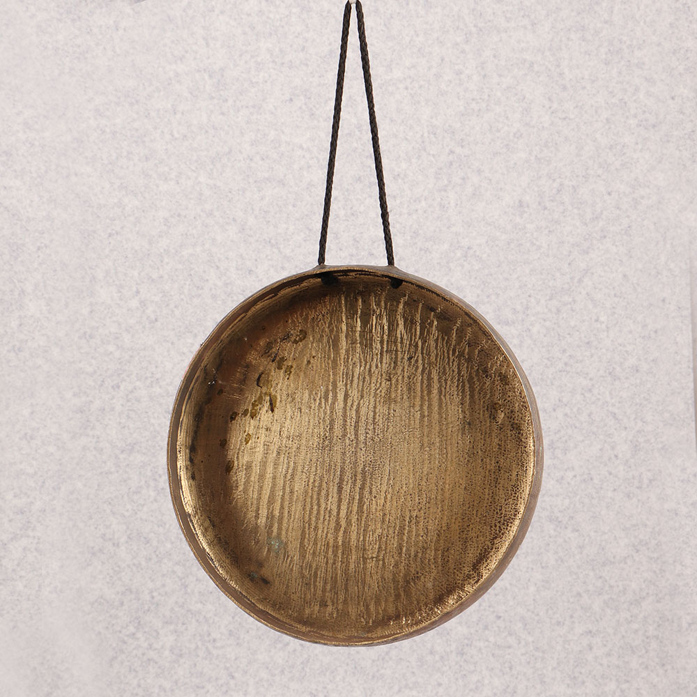 Enhance your surroundings with the timeless charm of our Vintage Bell Metal Gong which is a masterpiece handcrafted by talented artisans in the Tibetan art tradition. Made from high-quality bell metal, this gong boasts an antique brown finish that adds a touch of vintage allure to any space. The included string makes it easy to hang in your home, office, restaurant, hotel, or cafe, transforming any setting into a haven of tranquillity. Not just a stunning decorative piece, this gong serves various practical purposes. Its melodious tones can be used to signal the beginning or end of a meditation session, mark a special moment, or simply create a serene ambiance. Add it to your vintage collection or gift it to your family, friends or relatives on special, festive, or auspicious occasions, offering them a unique piece of art that resonates with cultural and artisanal significance.