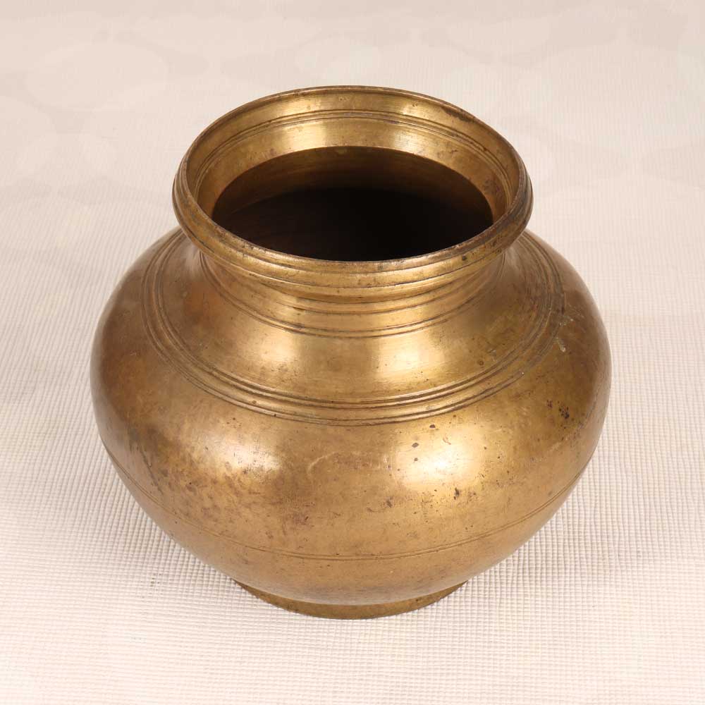 Steep yourself in spiritual heritage with this handcrafted vintage brass holy water pot. In the traditional South Indian Art style, it adds antique elegance to puja and prayer. The pot's graceful shape invites contemplation and ceremony. During puja, use it to pour cleansing water, representing purity. Or fill it with fresh blooms to decorate your altar in beauty. However you use it, the pot creates an ambiance of tranquility and meaning. For devotees seeking to strengthen their faith, this cultural artifact provides a tangible connection to tradition. Its heritage styling speaks to the rich spiritual practices of South India. Display the holy water pot with pride to infuse your daily worship with a deeper sense of history and devotion. Let its graceful presence renew your spirit.