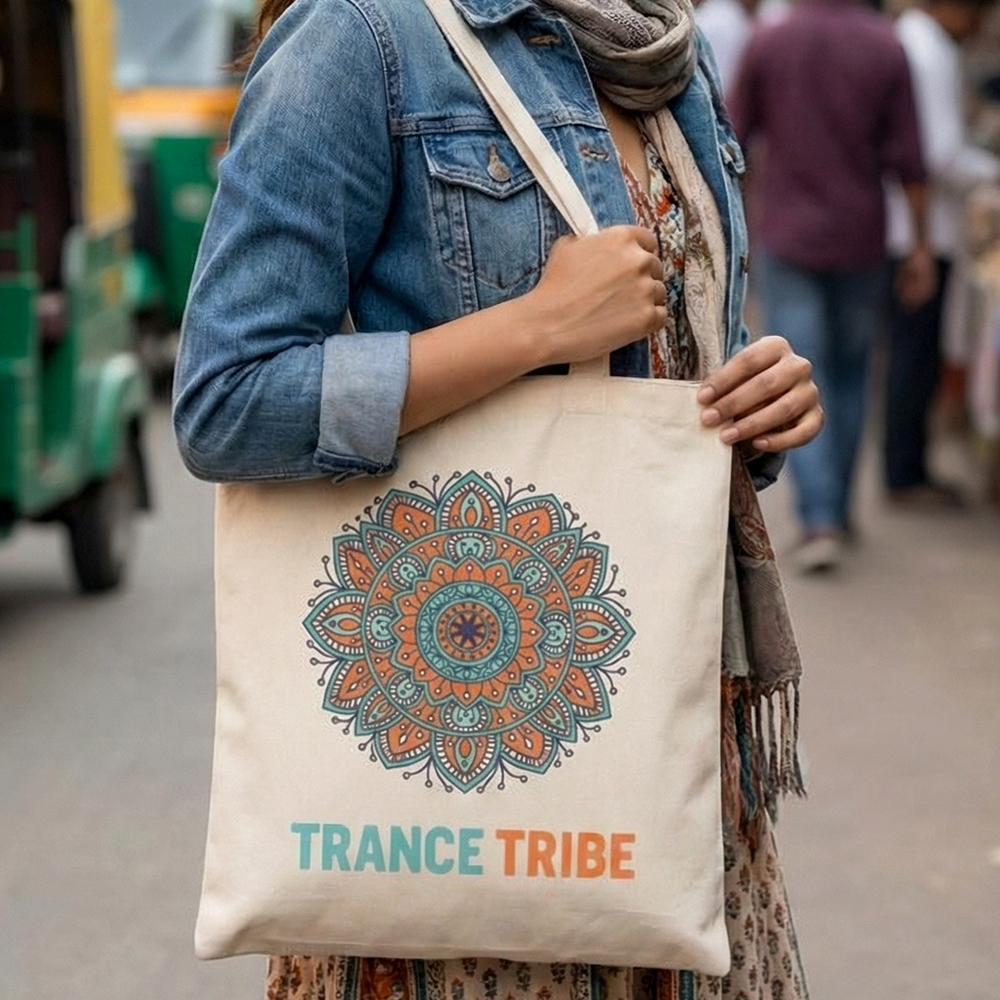 The Trance Tribe tote celebrates form, repetition, and cultural rhythm. Designed for everyday movement, it offers a reusable alternative that feels grounded, expressive, and visually intentional.