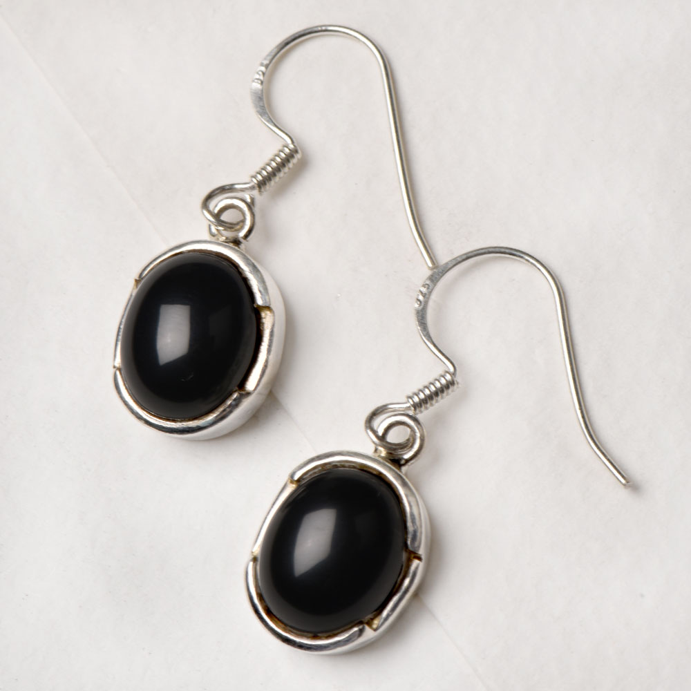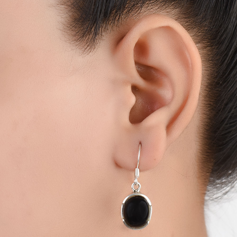 Handcrafted Trendy 92.5 Sterling Silver Earrings Big Oval Cabochon Bezel Setting Dangler Earrings with Big Oval Black Onyx Stone In Bezel Setting. Wear it for weddings, engagement , interviews , birthday party, Valentine Day etc.