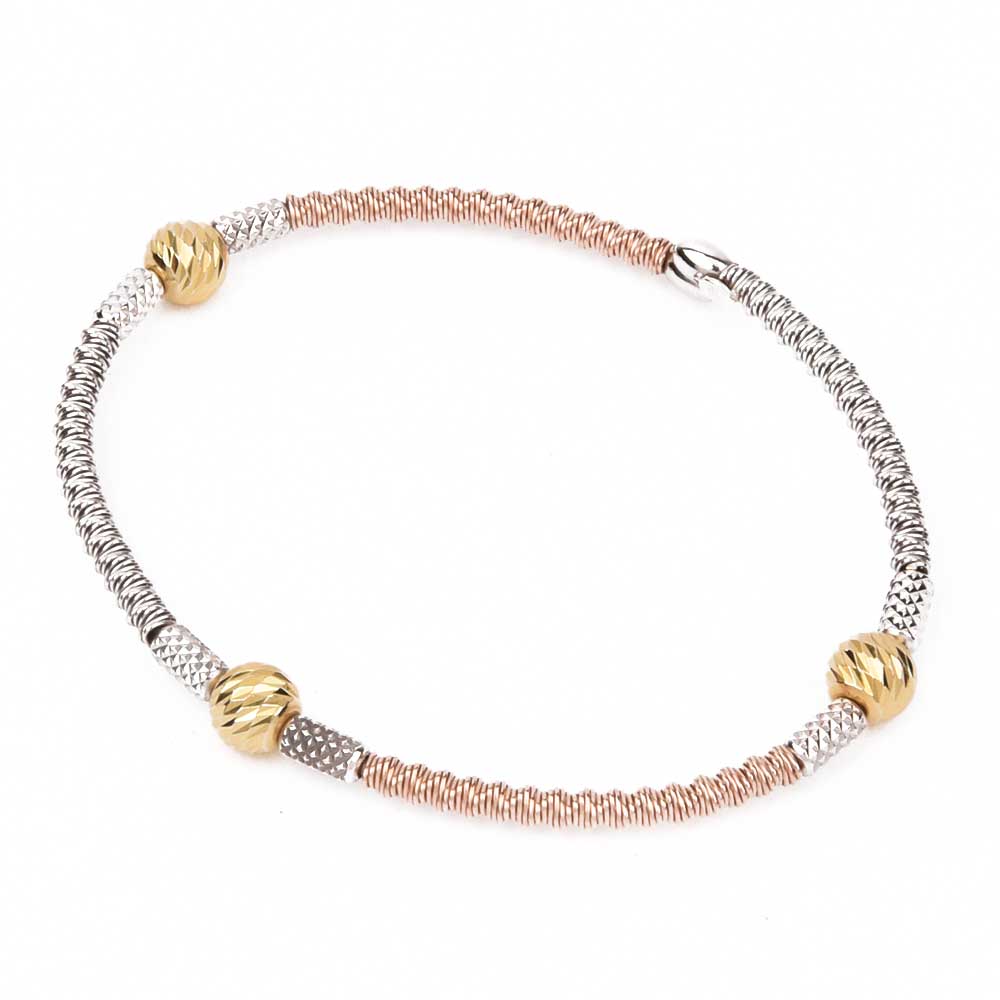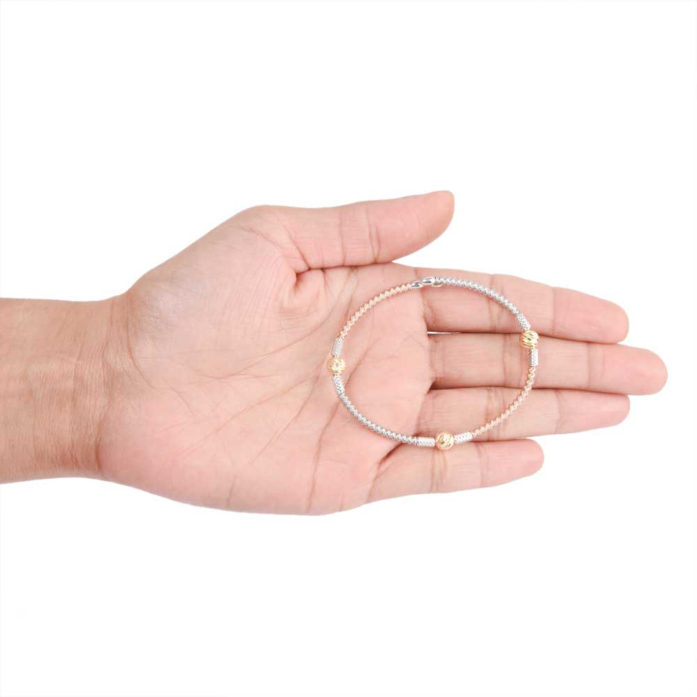 Trendy Dual Tone 92.7 Sterling Silver Gold Plated Kada Beads Bracelet . Great gift alternative for beloved, special occasions like a birthday, graduation, day of remembrance, wedding, Christmas, Easter, Valentine Day and day - excellent for girlfriend, daughter, wife, mom, ally, sister.