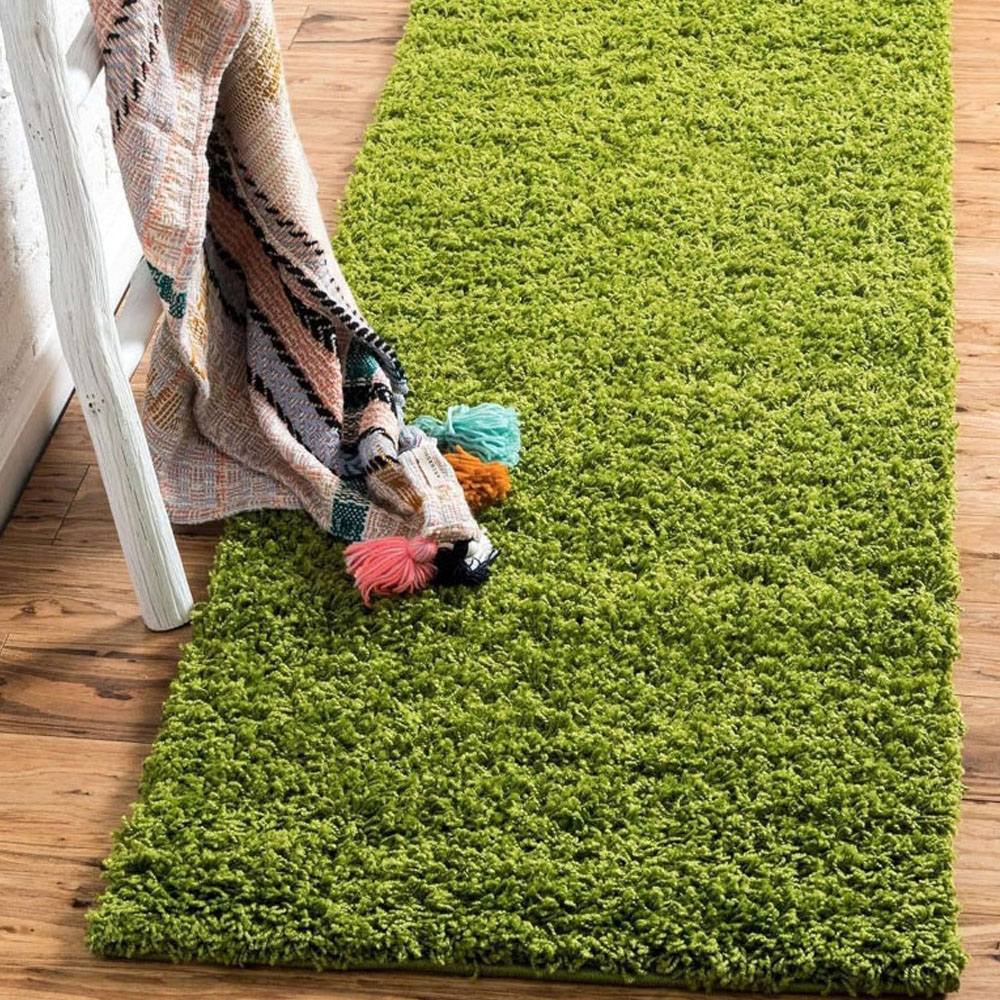 Vacuum gently to keep the shag texture fluffy. Spot clean spills with mild detergent and water. Keep away from direct sunlight to preserve the vibrant green color.