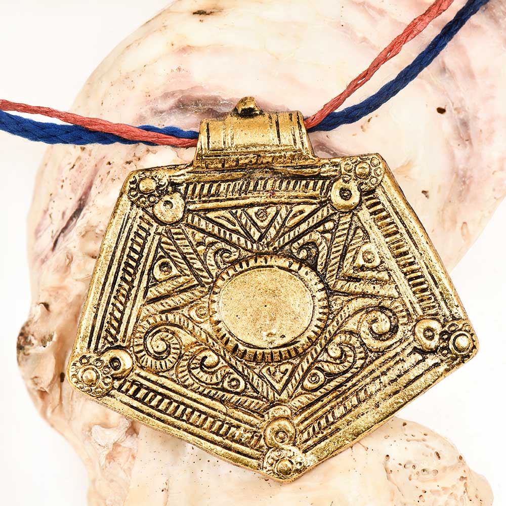 Add a statement of confidence and creativity to your look with this Golden Aluminum Metal Pentagon Pendant Necklace, a stunning fusion of modern design and traditional craftsmanship. Handcrafted from polished aluminum with a radiant gold finish, the five-sided pendant symbolizes balance, protection, and individuality. Its geometric shape and minimalist aesthetic make it the perfect accessory for those who love jewelry that stands out with effortless elegance.