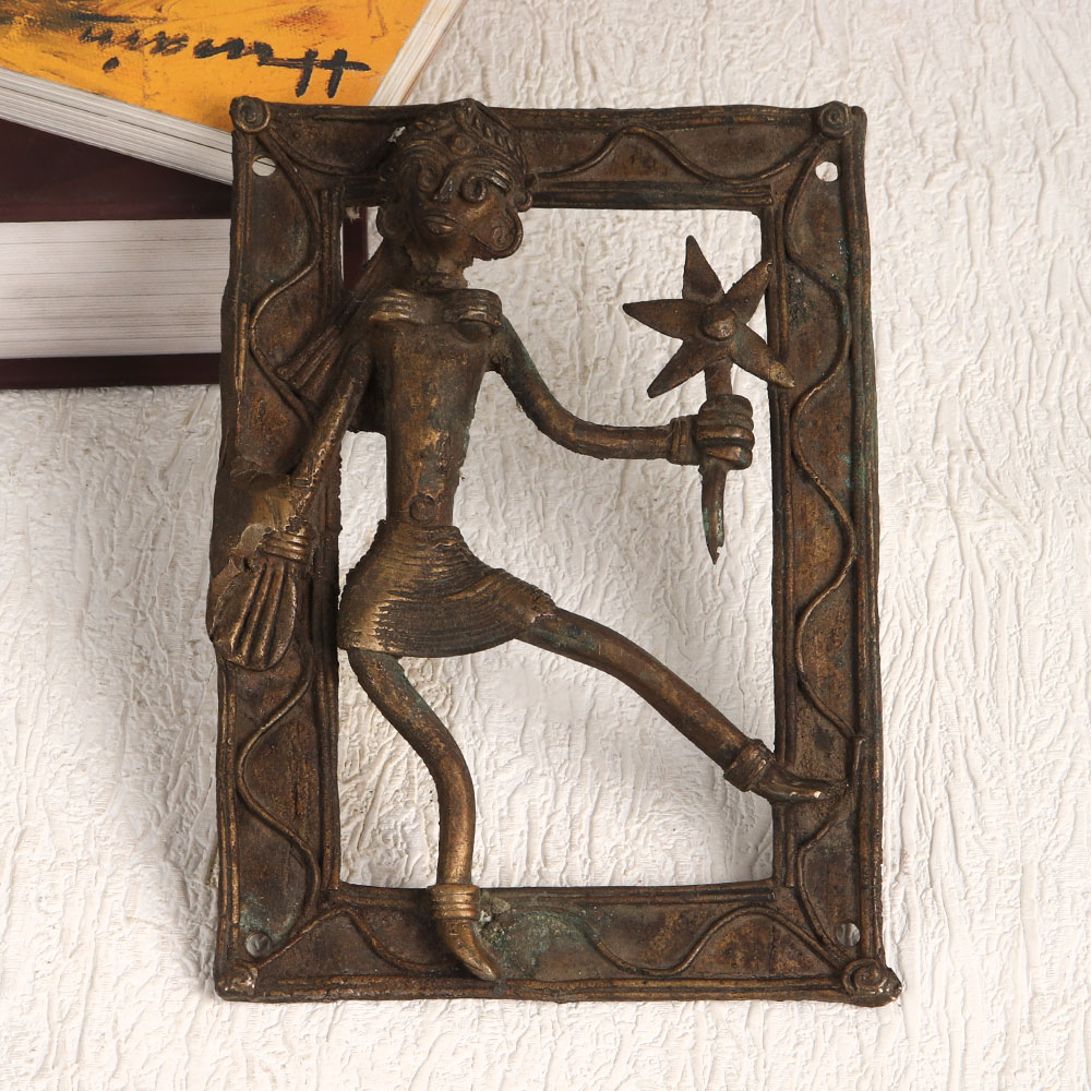Adorn your interior with the timeless charm of this exquisite Brass Tribal Plate. Crafted with precision and passion by highly skilled Indian craftsmen, this piece embodies the essence of Tribal Art. The antique brown finish adds an authentic, rustic touch that tells a story of heritage and culture. This tribal plate showcases a captivating scene of a lady delicately holding a flower in her hand, a symbol of grace and nature's beauty. The intricate details and remarkable craftsmanship bring this piece to life, making it an extraordinary addition to any setting. Versatile and captivating, this handmade treasure can grace your home, office, restaurant, hotel, cafe, or shop, effortlessly enhancing the ambiance with its cultural allure. Whether adorning your living room, adorning a dining area, or adding character to a workspace, this brass plate is a unique choice. For collectors of vintage and tribal art, this piece is a must-have, adding depth and character to your existing collection. Furthermore, it makes for a thoughtful and elegant gift for your family, friends or relatives on special, festive, or auspicious occasions, symbolizing your appreciation for art, tradition, and beauty.