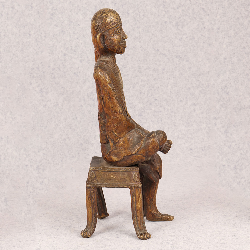 Enhance your spiritual space with the brass statue of Sai Baba that is a manifestation of divinity and serenity. Crafted by highly skilled and experienced Indian artisans in the timeless tradition of Tribal Art, this statue is a testament to the rich cultural heritage of India. The dark finish adds a touch of sophistication and mystique, making it a captivating centerpiece for any setting. Handmade with meticulous attention to detail, the statue captures the essence of Sai Baba's tranquil presence, seated on a stool with an aura of divine grace. Crafted from high-quality brass, it ensures durability and a timeless aesthetic that resonates with admirers of traditional art. Versatile and adaptable, this statue is perfect for adorning your home, office, restaurant, hotel, or cafe prayer room. Its cultural significance and aesthetic appeal also make it a noteworthy addition to any vintage collection. Moreover, this beautifully crafted piece serves as an ideal gift for your family, friends or relatives on special, festive, or auspicious occasions, embodying the blessings of Sai Baba and fostering a sense of spirituality and warmth.