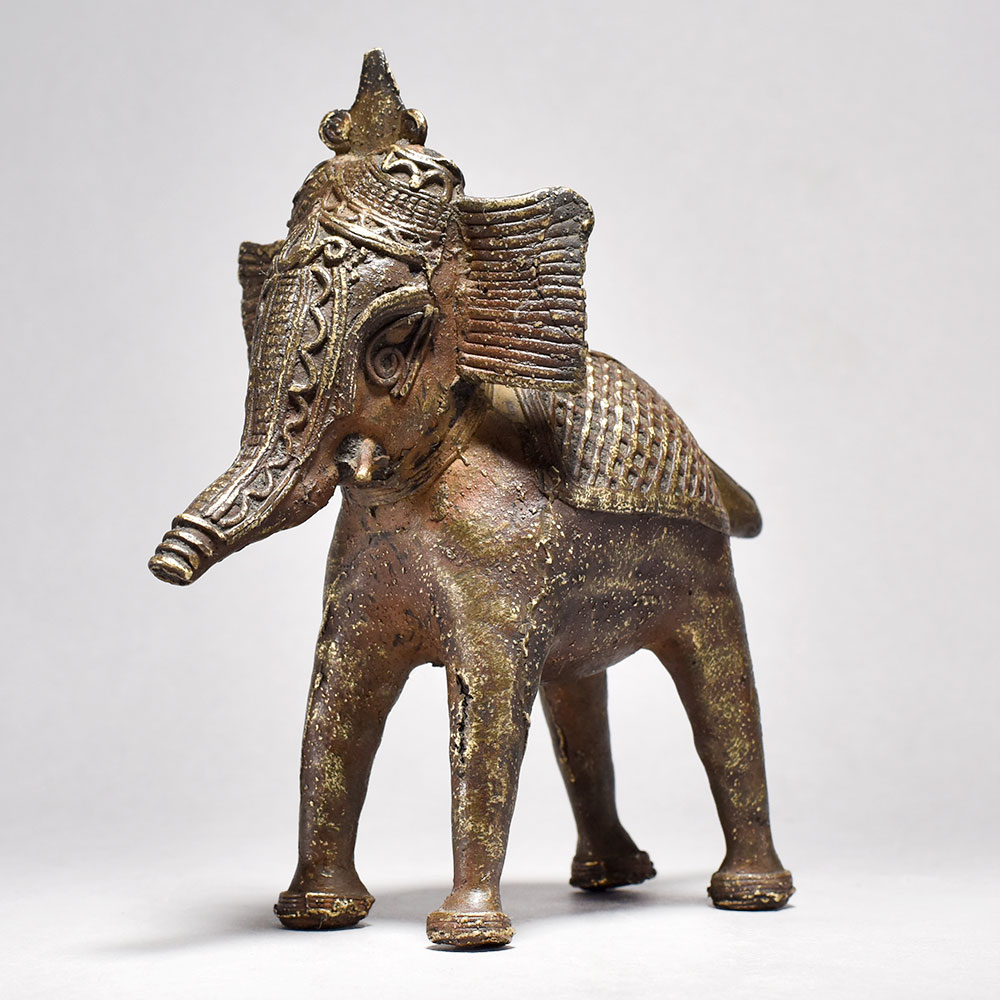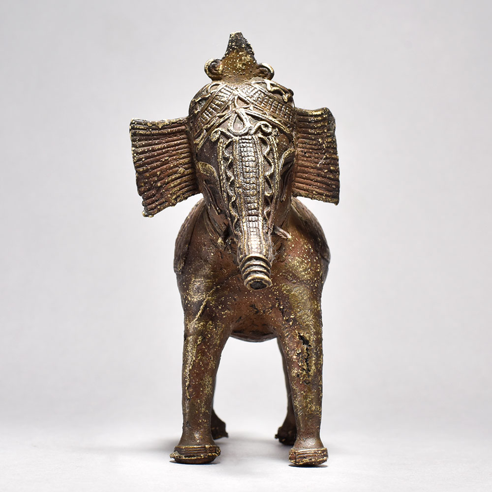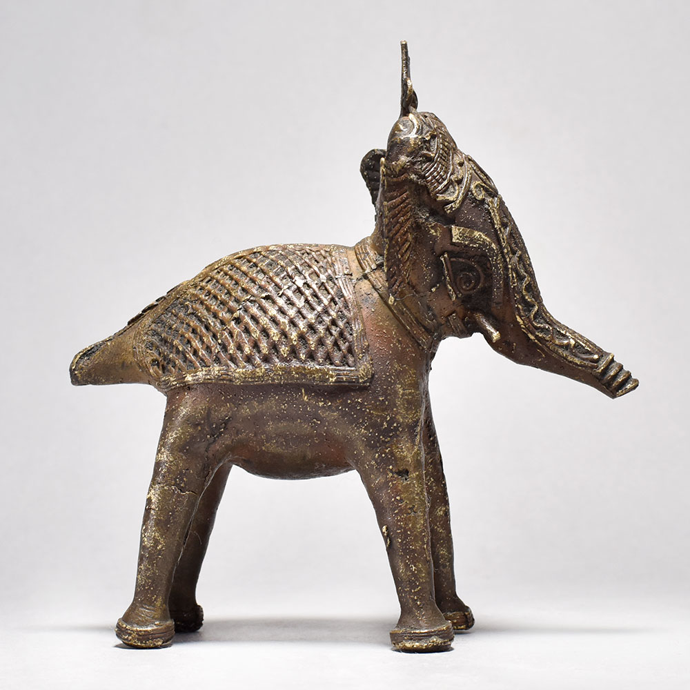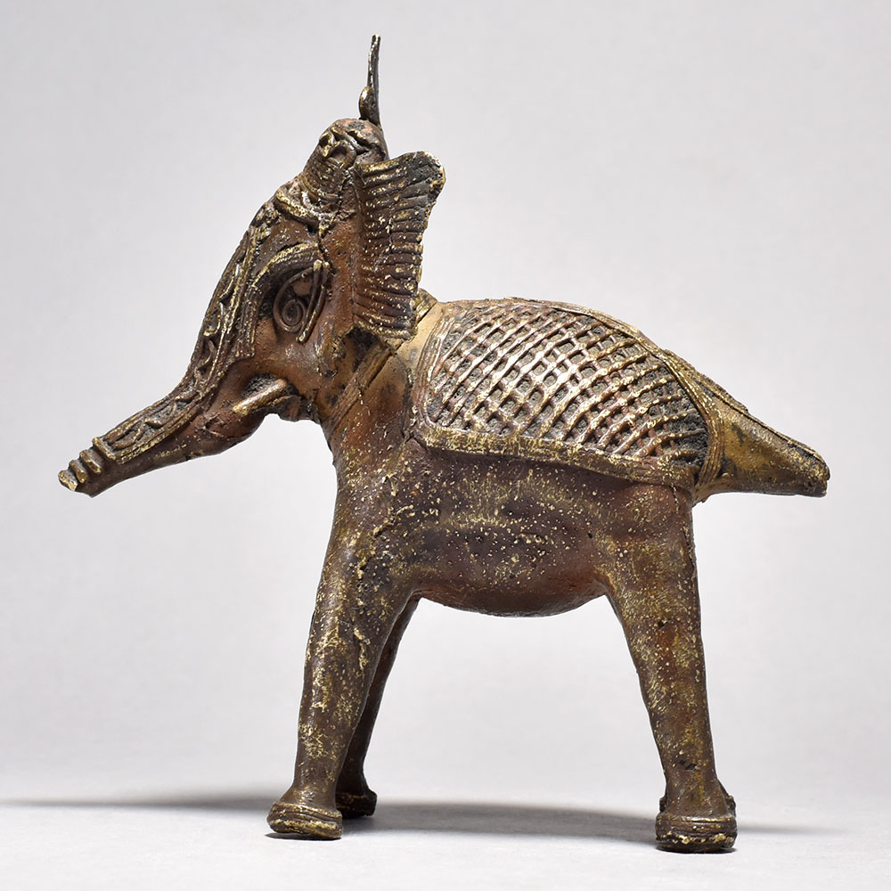 Discover the ancient artistry of India with this captivating Tribal Elephant Figurine.This striking brass elephant figurine is more than just a decoration - it's a work of art that celebrates the rich cultural heritage of Orissa, India. Inspired by traditional tribal designs, each piece is carefully handcrafted to embody the power and grace of these magnificent creatures. The half-raised trunk is a symbolic gesture, imbuing the figure with a sense of authority and regal presence. Display this stunning, one-of-a-kind piece to infuse your space with the timeless beauty of Indian craftsmanship. Meticulously handcrafted from solid brass Unique tribal design with half trunk raised Captures the majesty and strength of the elephant Adds an exotic, cultural flair to your decor This unique handcrafted piece is a testament to traditional artistry, blending functionality with beauty and making it a treasured collectible for years to come.