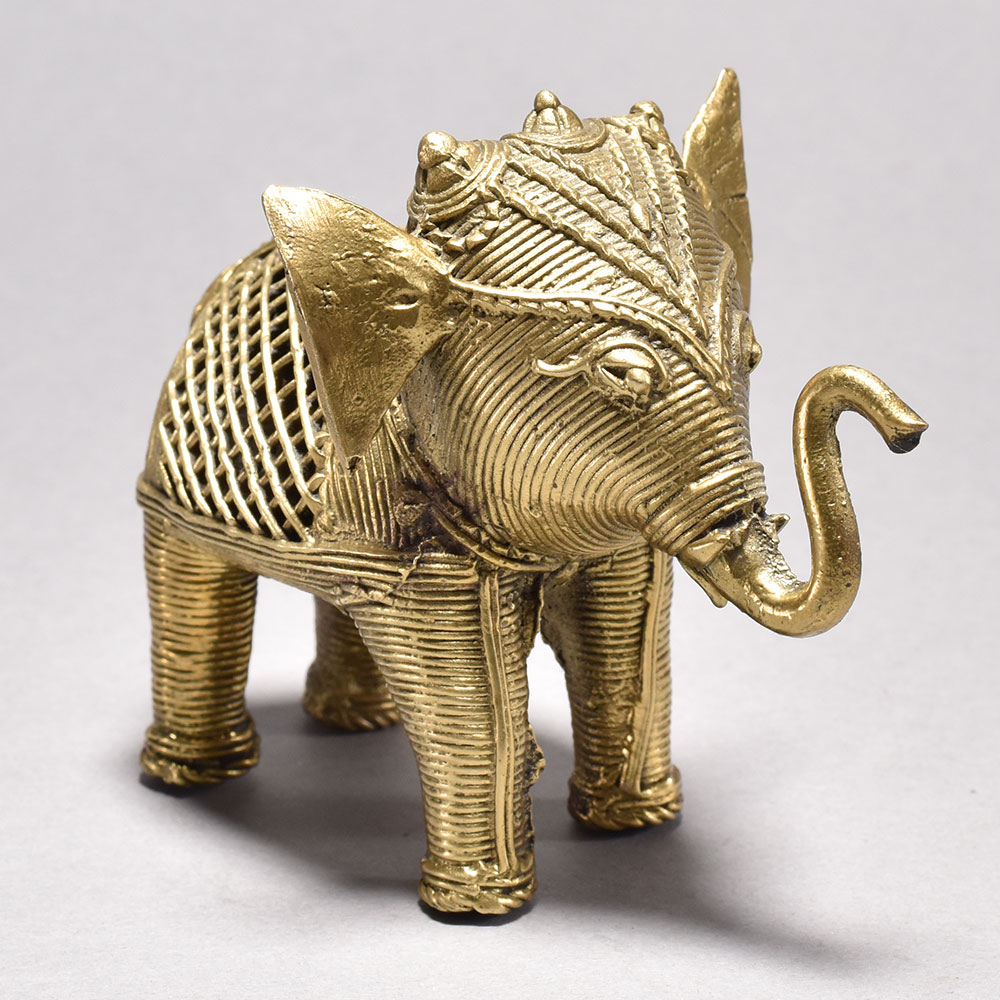 Bring the vibrant culture of India into your home with this stunning tribal art elephant. Meticulously crafted with intricate jalli work, this piece is a true masterpiece.This elephant figurine is not just a decoration - it's a work of art that celebrates the rich cultural heritage of India. Display it proudly in your living room, office, or any room that needs a touch of exotic flair. It makes a beautiful centerpiece or accent piece that will have your guests mesmerized by its beauty. Whether you're an avid collector of tribal art or simply looking to add a distinctive piece to your home decor, this elephant statue is sure to impress. Bring the mystique of the Indian subcontinent into your life and let this stunning creation transport you to a different world. Handmade from high-quality metal sourced from the artisanal region of Orissa This timeless piece is handcrafted by skilled artisans using time-honored techniques, ensuring each creation is truly one of a kind. Its versatile design makes it suitable for living rooms, bedrooms, offices, or meditation spaces, bringing a sense of heritage and style wherever it is displayed.