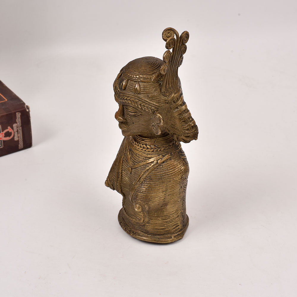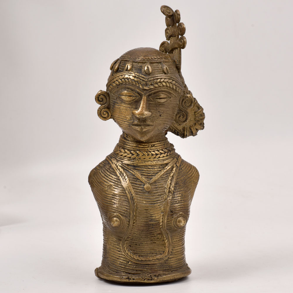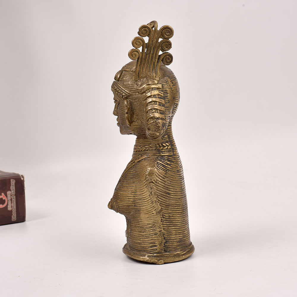 Elevate your decor and connect with the divine feminine energy of the Goddess Parvati with this breathtaking brass statue, a masterpiece of the renowned Bastar art tradition. This brass Parvati bust is more than just a stunning decorative piece - it's a portal to the calming, protective power of the divine mother. Whether you're drawn to Hindu spirituality or simply appreciate exquisite craftsmanship, this Bastar-style statue will captivate you and your guests, becoming a cherished centerpiece in your living room, meditation space, or altar. The Bastar region of central India is renowned for its rich artistic legacy, and this Parvati sculpture is a shining example. Crafted by local artisans who have honed their skills over generations, it embodies the distinctive style and timeless allure of Bastar art. From the serene expression on the Goddess' face to the harmonious proportions of the design, every element of this brass statue speaks to the deep reverence and mastery of the Bastar tradition. Display it prominently in your home, and let its sacred presence infuse your space with an atmosphere of reverence and tranquility.