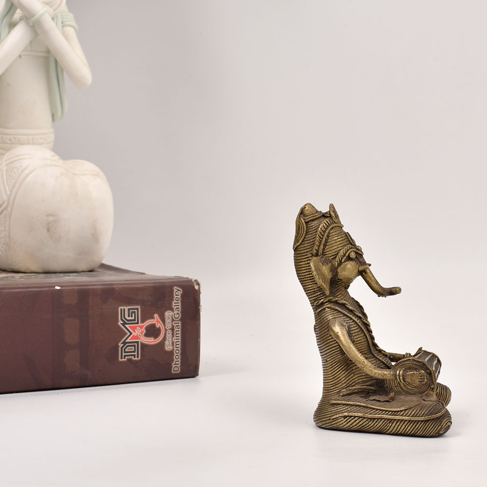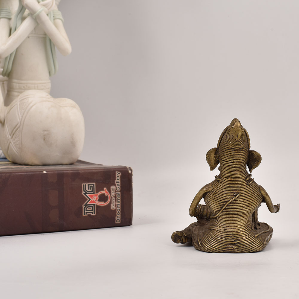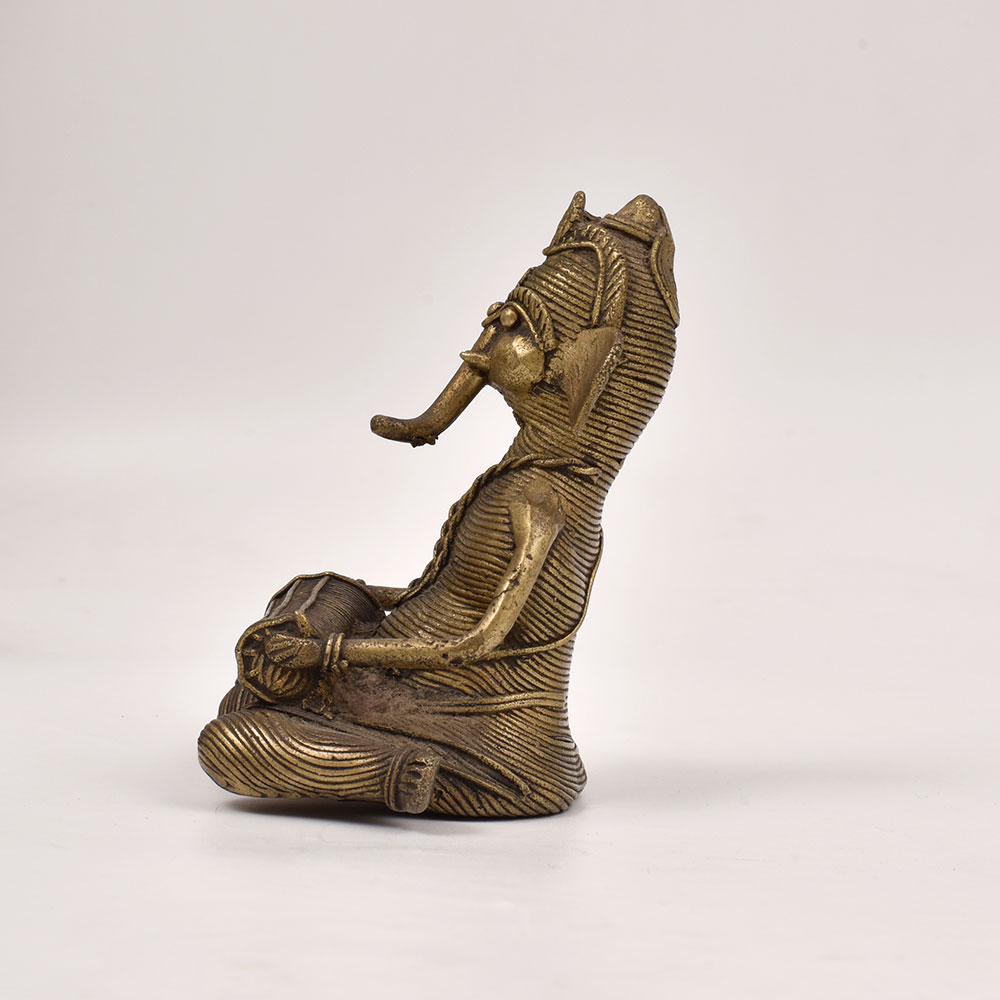 Bring the timeless wisdom and spiritual energy of Lord Ganesha into your home with this exquisite brass statue. Crafted by skilled artisans in the Tribal Art region of Odisha, this stunning piece showcases the revered deity in a dynamic pose, playing a traditional drum that symbolizes the rhythms of life. The level of intricate detailing in this statue is simply breathtaking, from the ornate patterns adorning Ganesha's body to the realistic textures of the drum. With its substantial size and heft, this brass Ganesha statue commands attention as a captivating centerpiece or accent piece. Display it prominently to cultivate an atmosphere of prosperity, protection, and enlightenment in your space. Whether you're a devotee of Lord Ganesha, a collector of fine Indian art, or simply someone who appreciates beautiful, high-quality home decor, this brass statue is a must-have piece that will be cherished for generations. Invite the blessings of the Elephant-Headed God into your home and enjoy the many gifts he bestows upon those who honor him.