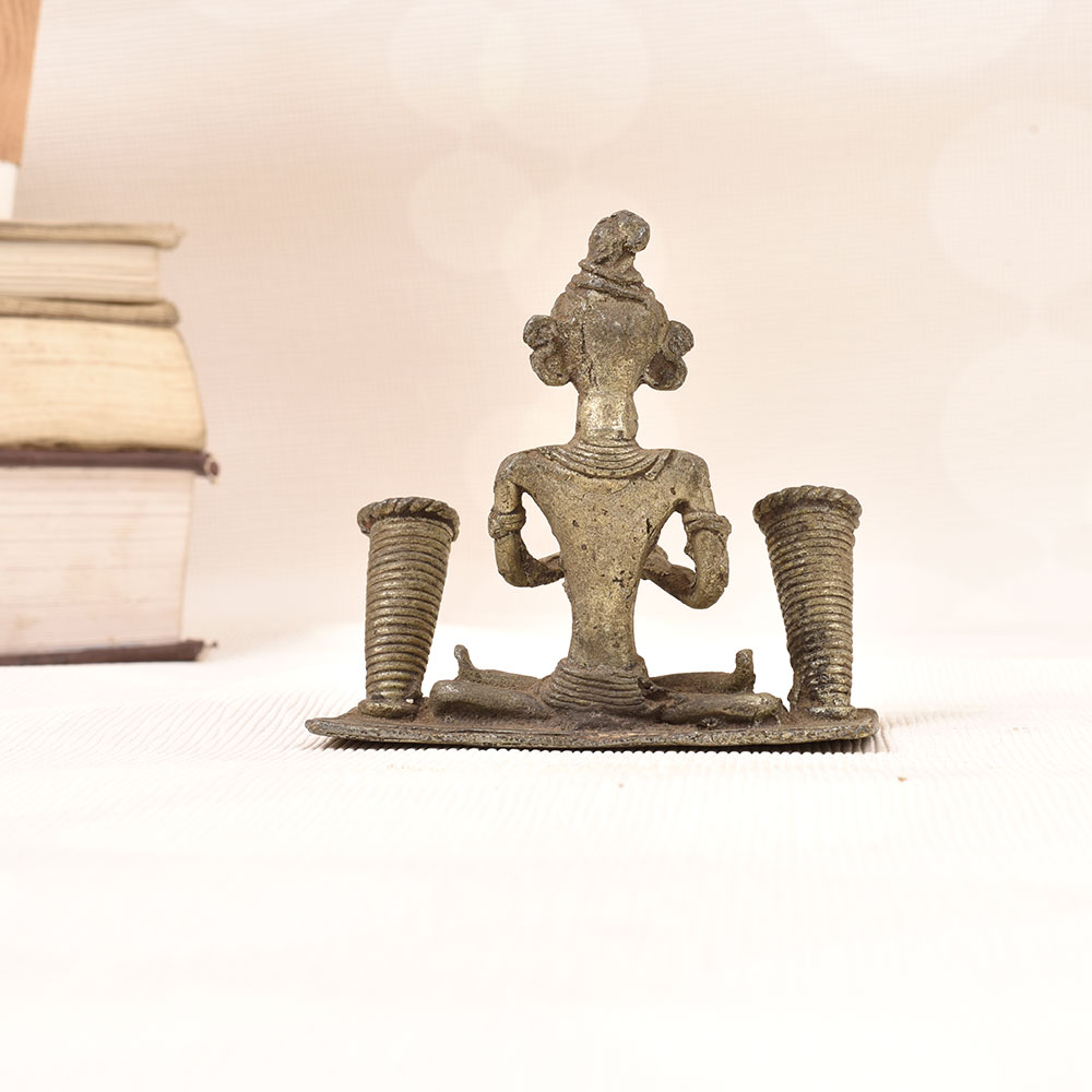 Bring a sense of ancient wonder to your meditation and relaxation rituals with this stunning vintage brass incense holder. Adorned with a captivating male figure in the style of Tribal Art, this one-of-a-kind piece commands attention as the perfect centerpiece for your sacred space. This brass incense holder is more than just a functional piece - it's a work of art that elevates your entire ritual experience. Lose yourself in the mesmerizing details of the Tribal figure as the soothing scent of your favorite incense fills the air. Whether you're meditating, practicing yoga, or simply seeking a moment of calm, this holder will transport you to a higher plane of relaxation and focus. Designed for the discerning aesthete who appreciates the intersection of form and function, this incense holder is a must-have addition to any spiritual or mindfulness practice. Bring the spirit of ancient cultures into your home and enjoy the grounding, meditative benefits of ritualistic incense burning every day.