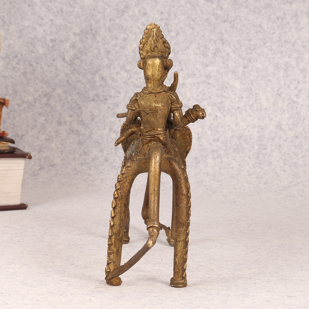 Discover the enchanting allure of this exquisite vintage brass elephant sculpture, where the rich tapestry of global culture and timeless artistry come together to create a mesmerizing centerpiece for your home. Crafted with meticulous attention to detail, this long-limbed pachyderm features two tribal riders perched atop its back, inviting you to embark on a journey of cultural exploration and design excellence. Elevate your home decor with the captivating presence of this vintage brass elephant sculpture. Its striking design and cultural significance will ignite the imagination and inspire awe in all who witness it, sparking conversations and infusing your living space with a touch of global charm. Whether you're a discerning collector or simply seeking to infuse your home with a unique and visually stunning piece, this exceptional sculpture is sure to become a cherished addition to your household.