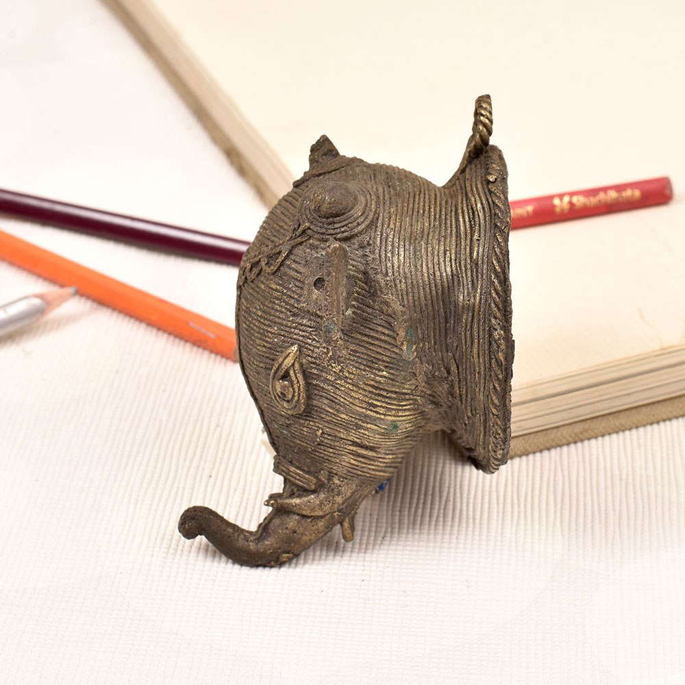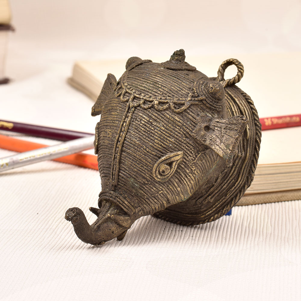 Bring the majestic beauty of the elephant into your home with this stunning vintage folk brass elephant head wall hanging. Crafted with intricate detail and an antique finish, this piece is a captivating work of art that will instantly elevate your space. This brass elephant head is more than just a decorative accent - it's a celebration of the incredible power and intelligence of these magnificent creatures. Elephants have long been revered in many cultures for their strength, wisdom, and deep connection to the natural world. Displaying this piece in your home allows you to bring that reverence and cultural richness into your own space. Whether you're drawn to the beauty of tribal art or simply love the majestic presence of elephants, this vintage folk brass wall hanging is a must-have addition to your home. Its sturdy construction and eye-catching design make it the perfect piece to anchor a gallery wall, fill an empty nook, or add some global-inspired style to any room. Embrace the allure of the elephant and let this stunning brass sculpture transport you to distant, exotic lands.