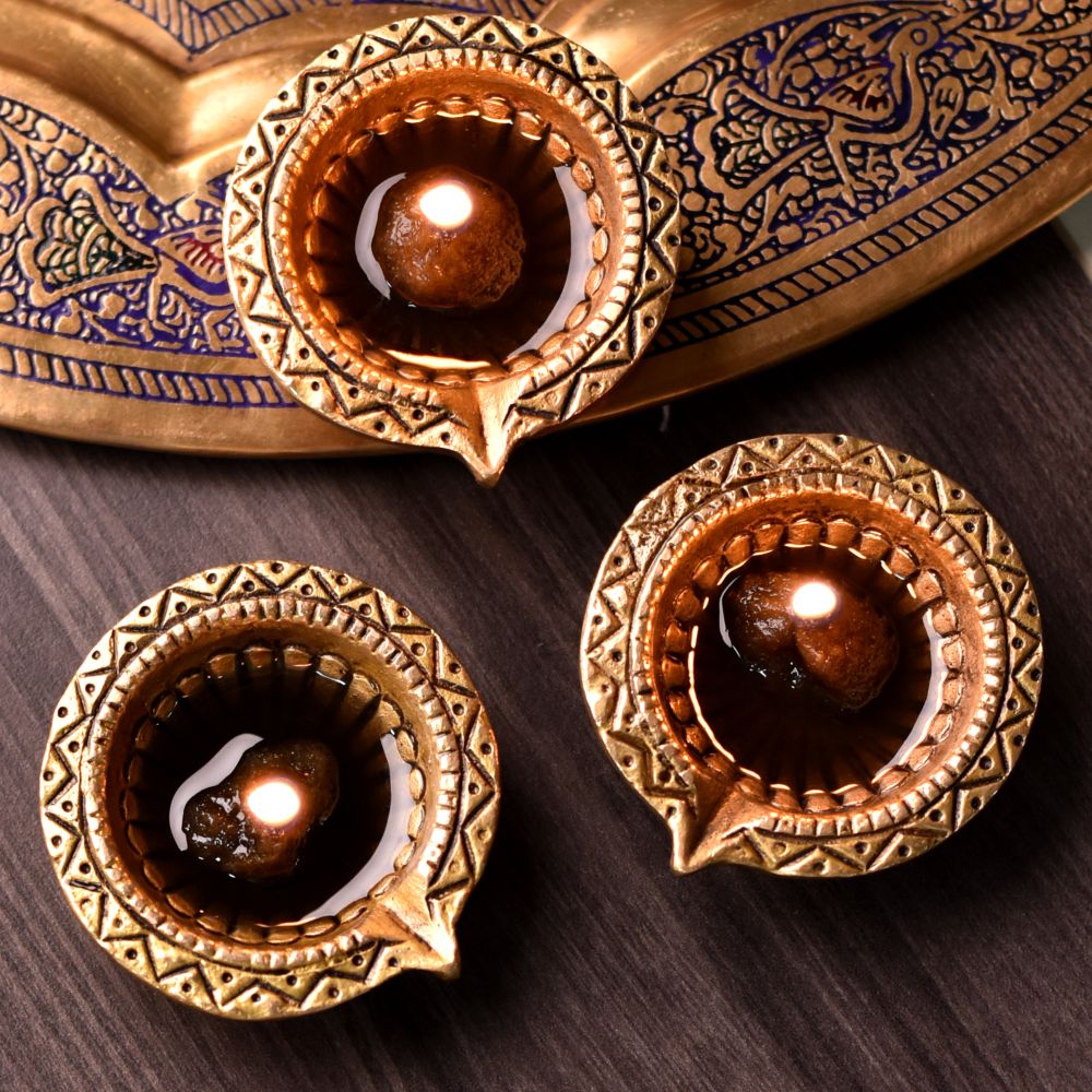 Celebrate heritage and light with this Tribal Design Round Brass Diwali Diya, a handcrafted deepak that blends ethnic artistry with traditional devotion. Cast in solid brass with a polished golden finish, it features a round tribal-inspired design symbolizing unity, prosperity, and divine blessings. Compact yet elegant, it’s perfect for puja rituals, festive décor, and cultural gifting.