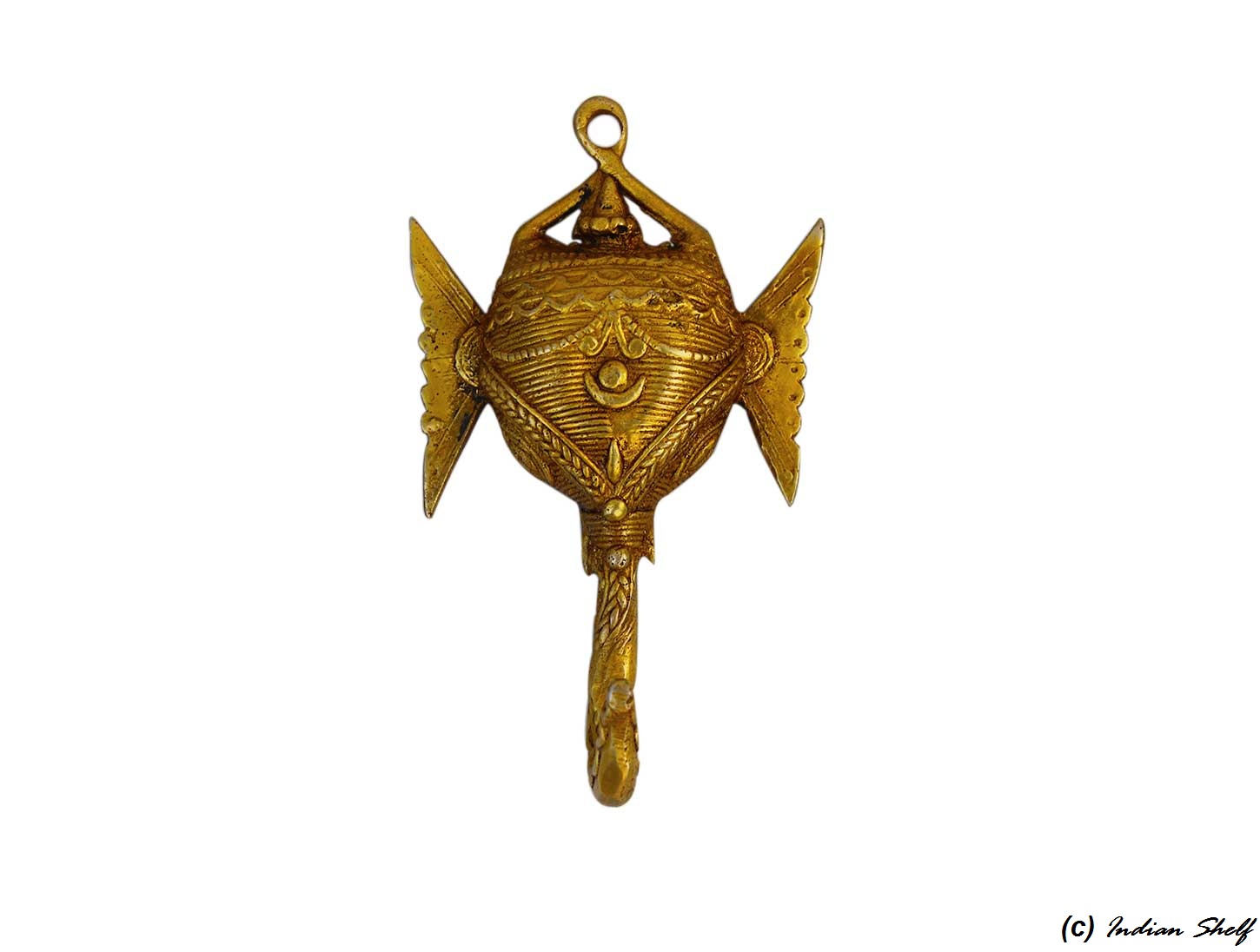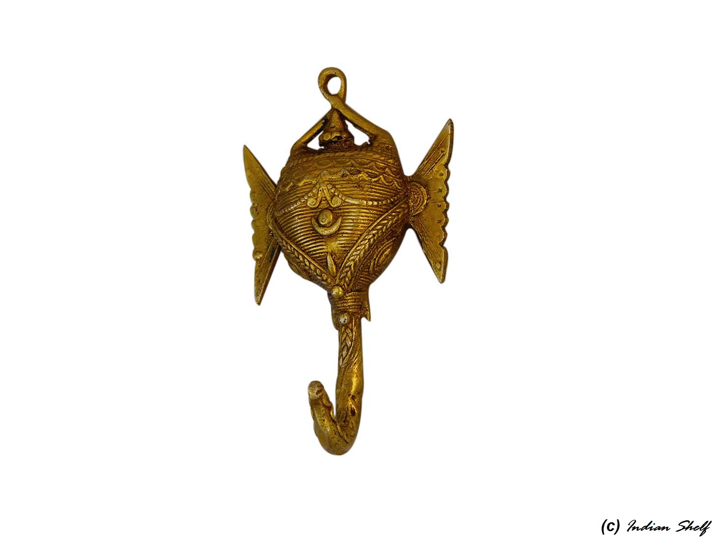 Tribal Ganesha Golden Hook. When Put on Wall or Cabinet It is An Art in Itself. This Hook is Strong Enough to Hold Your Clothes, Keys, Tea Cups, Coffee Mugs, Hand Towels Etc.
