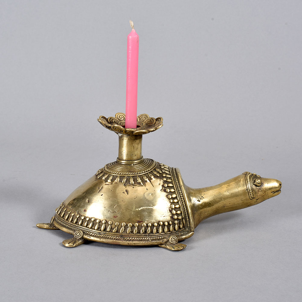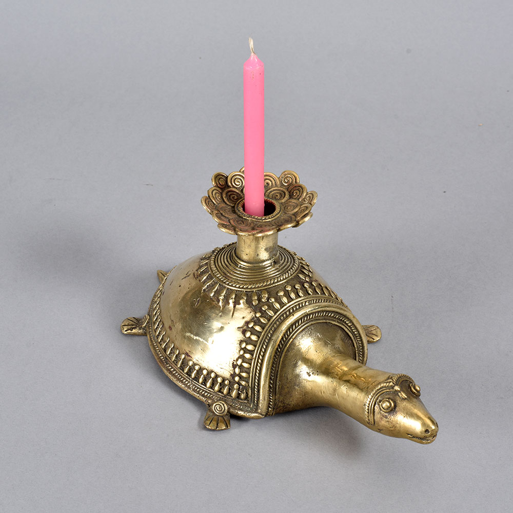 Bring a touch of enchanting, earthy elegance to your home with the Vintage Folk Brass Turtle Candle Holder. This stunning piece of tribal art will captivate all who lay eyes on it. The Vintage Folk Brass Turtle Candle Holder is more than just a candle holder - it's a work of art that transports you to faraway, mystical lands. The turtle design is a revered symbol in many cultures, representing longevity, protection, and wisdom. Display this piece in your living room, bedroom, or anywhere you want to infuse your space with an earthy, spiritual ambiance. This candle holder makes a thoughtful housewarming, birthday, or holiday gift for anyone who appreciates unique home decor with a global, bohemian flair. It's the perfect accent piece to complement your collection of tribal textiles, woven baskets, carved wooden sculptures, and other global-inspired décor. Embrace the beauty of the natural world and let the Vintage Folk Brass Turtle Candle Holder elevate your space.