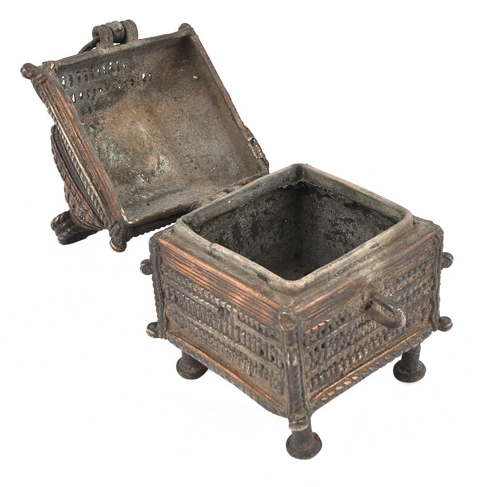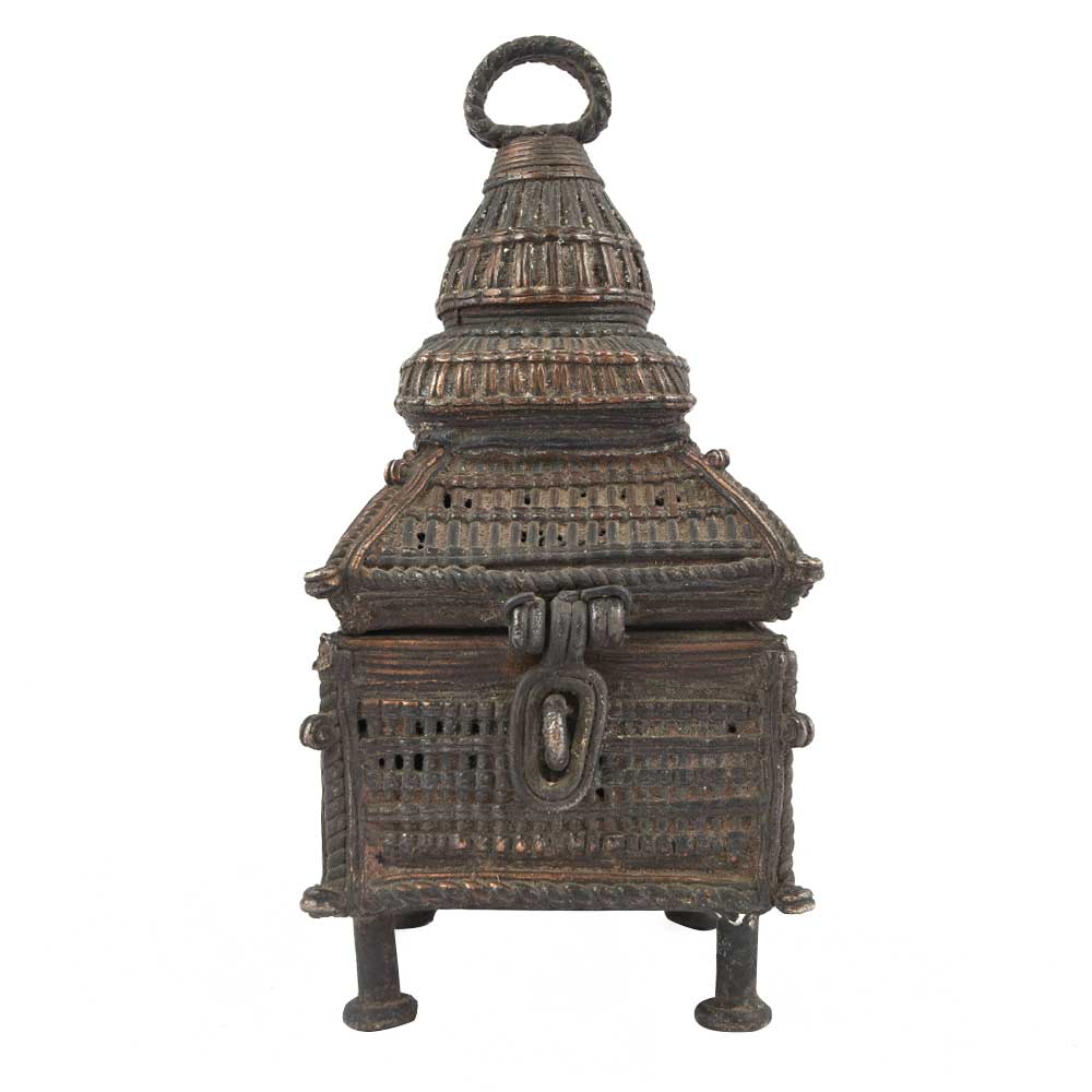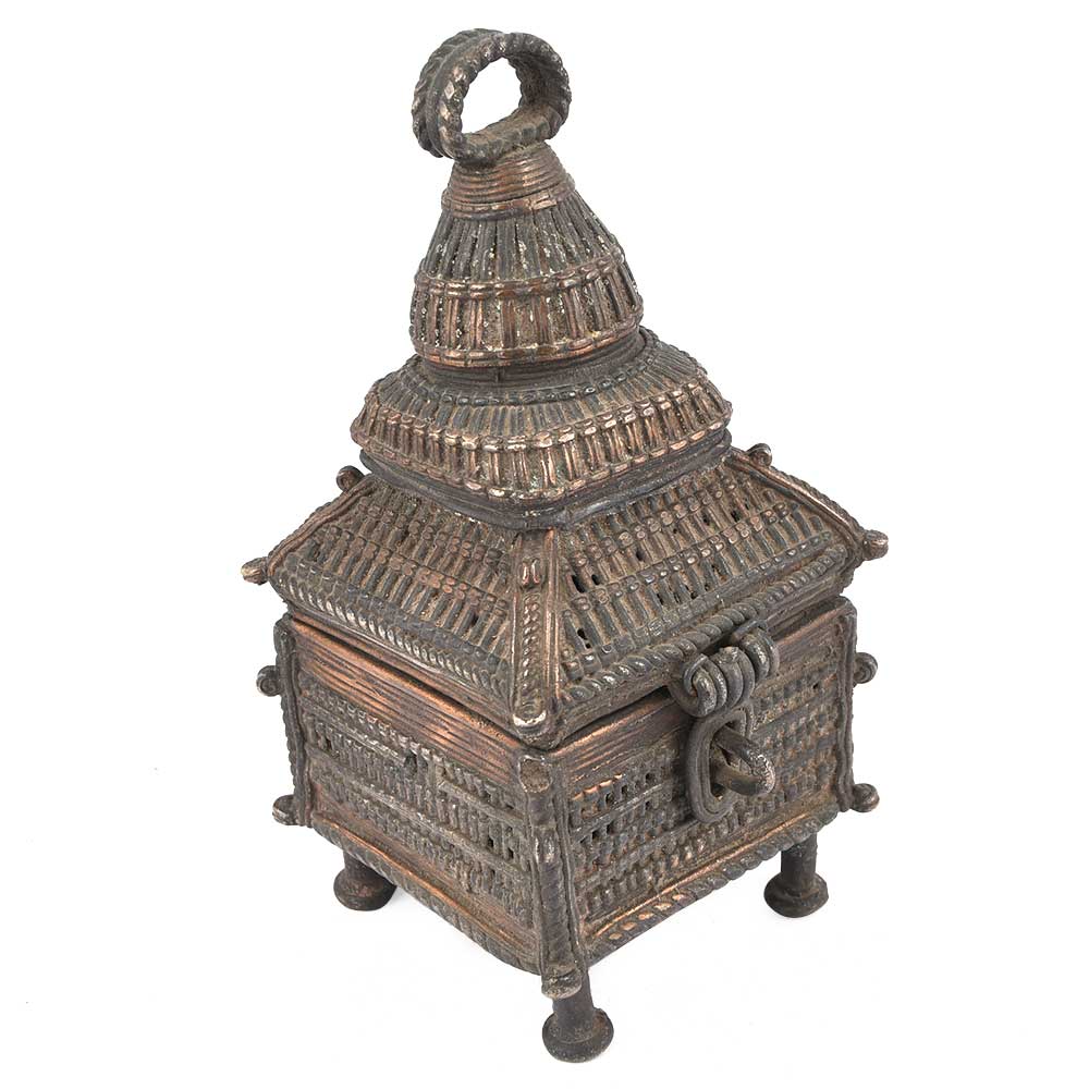Old and Handmade Dhokra Tribal Temple Shape Brass Box Used to Keep Your Valuables and Documents with a Latch Can Also Be Used to Store Puja Essential.