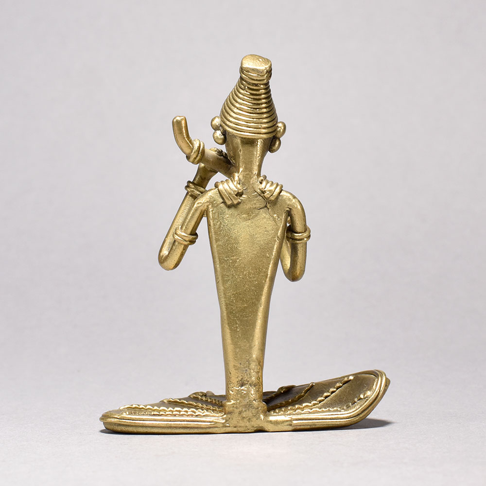 Bring the captivating rhythms of ancient tribal culture into your home with this exquisite tribal women figurine. Meticulously crafted from gleaming metal, this stunning piece depicts a woman sitting tranquilly and playing a hauntingly beautiful flute - a timeless image of the rich artistic traditions of Orissa.This tribal women figurine playing a flute is more than just a decorative piece - it's a window into a captivating world of tradition and creative expression. Display it proudly and let its soulful melodies transport you to the heart of Orissa's vibrant tribal heritage. Finely detailed metal figurine captures the serene poise of a tribal woman playing a flute This timeless piece is handcrafted by skilled artisans using time-honored techniques, ensuring each creation is truly one of a kind. Its versatile design makes it suitable for living rooms, bedrooms, offices, or meditation spaces, bringing a sense of heritage and style wherever it is displayed.