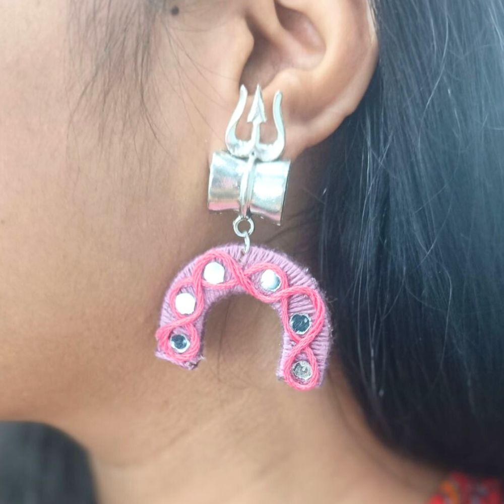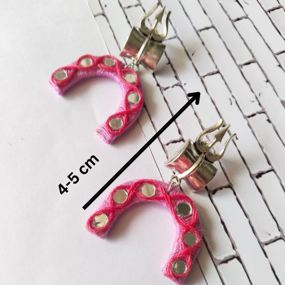 These Trishul Damru Pink Thread Earrings blend symbolic Indian motifs with modern handcrafted elegance. Featuring vibrant pink threads paired with silver-toned trishul and damru charms, the earrings celebrate spirituality and style in one effortless accessory. Lightweight, expressive, and culturally rich, they are perfect for women who enjoy jewelry with meaning and artisanal flair.