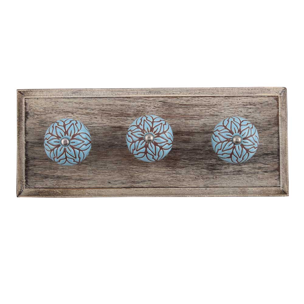 Turquoise Amarylis Floral Etched Ceramic Wooden Hook. A Perfect Complement to the Soft Tone of the Wood are these White Traditional Hat & Coat Hook Made of Genuine Porcelain and Brass. It can be use to Hang Jewellery, Leashes, Towels, Scarves, Light Weight Sweaters, Caps Etc.