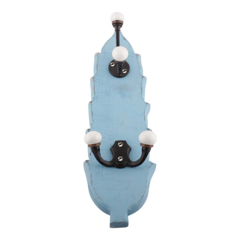 Turquoise And Black Double Loop Ceramic Iron Wooden Hooks. A Perfect Complement to the Soft Tone of the Wood are these White Traditional Hat and Coat Hook Made of Genuine Porcelain and Brass. It can be used to Hang Jewelry, Leashes, Towels, Scarves, Light Weight Sweaters, Caps etc.