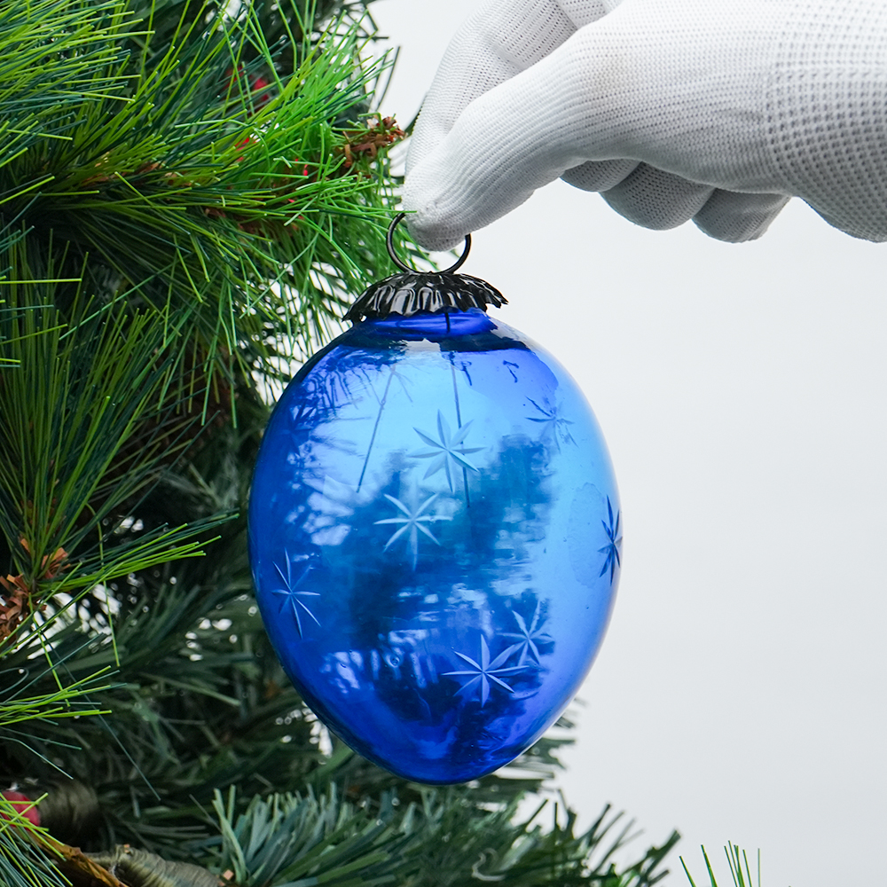 Made from premium glass, this Christmas hanging ornament showcases a carefully cut star design, ensuring it retains its shape and vibrancy throughout the holiday season. The rich turquoise and avocado hues are perfect for fostering a lively and festive atmosphere, while the ornament's sturdy construction guarantees it will endure for many Christmas seasons ahead.