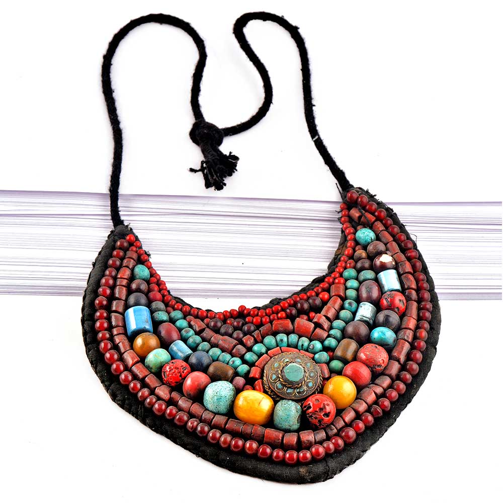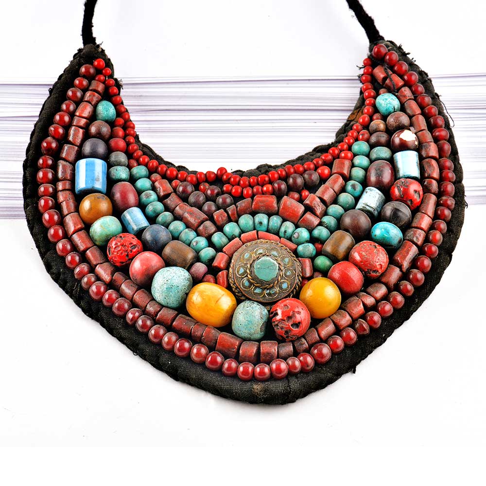 This Turquoise Beaded Traditional Necklace of Ladakh reflects the deep cultural roots and vibrant artistry of the Himalayan region. Handcrafted by skilled Ladakhi artisans, it features a beautiful array of turquoise-inspired and multicolor beads — each symbolizing harmony, vitality, and spiritual protection. With its traditional tribal design and earthy elegance, this necklace embodies the soul of Ladakh, where nature, faith, and craft merge into wearable art.