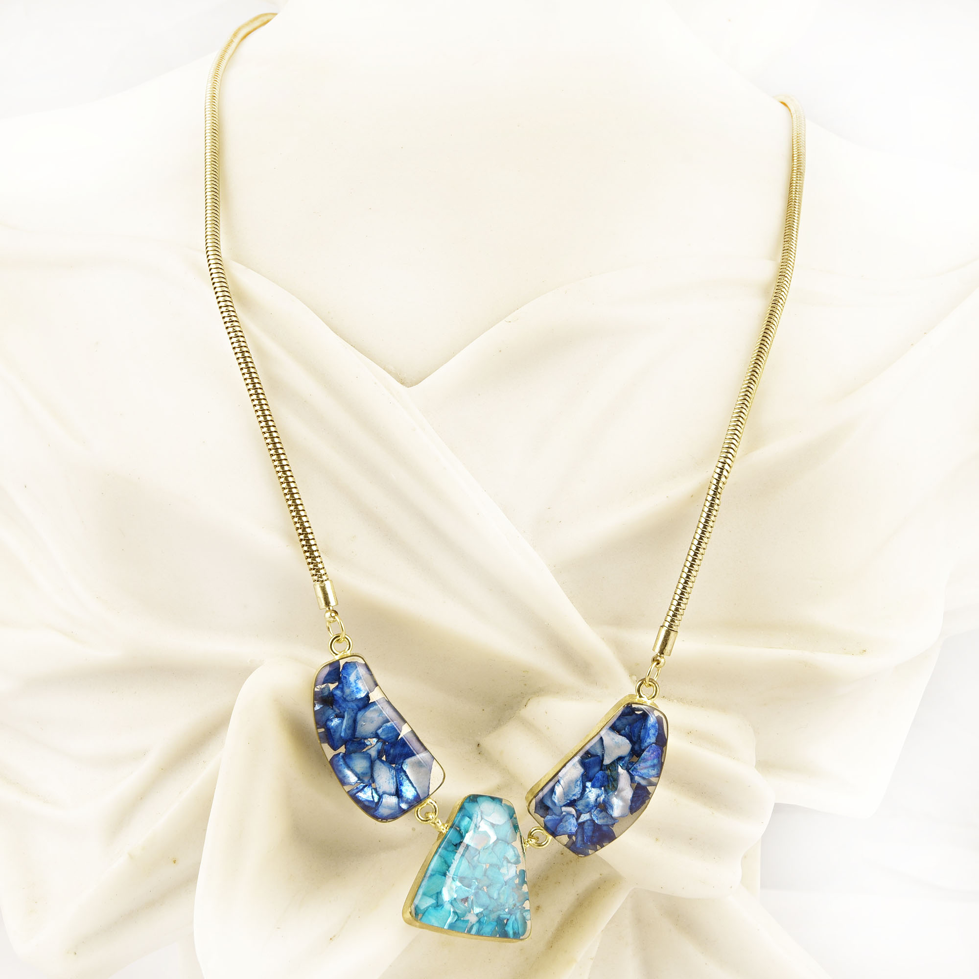 Turquoise Bib Necklace New Beautiful Jewellery. Raisin, Glass in a Brass Chain and Brass Clasp.