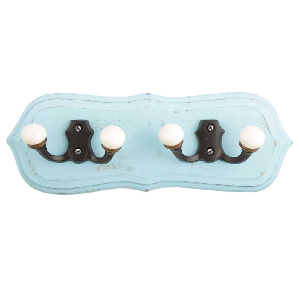 Turquoise Black Double Loop Ceramic Iron Wooden Hooks. A Perfect Complement to the Soft Tone of the Wood are these White Traditional Hat & Coat Hook Made of Genuine Porcelain and Brass. It can be use to Hang Jewellery, Leashes, Towels, Scarves, Light Weight Sweaters, Caps Etc.